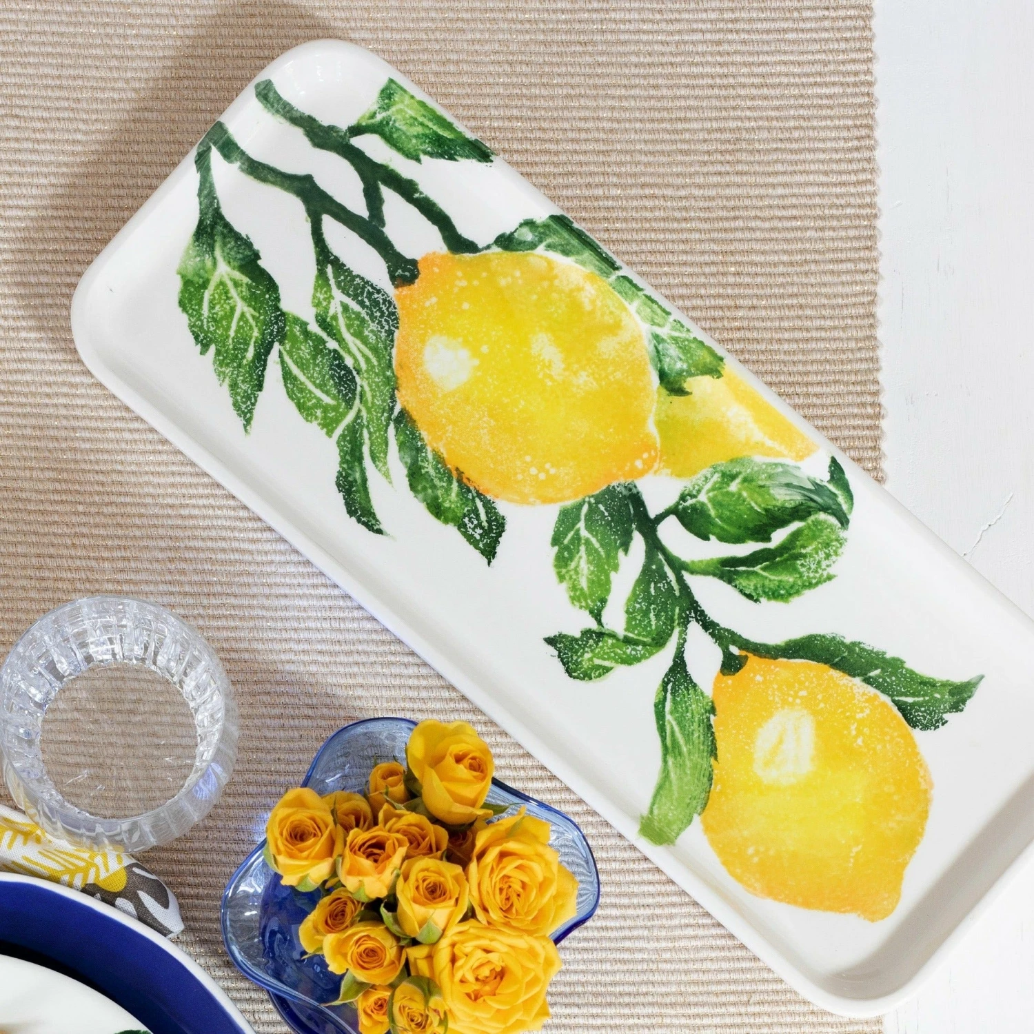 Inspired by the bountiful, robust lemons that flourish in the sunshine along the Amalfi Coast, the Limoni collection is cheerful, vibrant, and iconically Italian. The Limoni Rectangular Tray is a delightful piece that brings a lightness and zest to whatever you serve.