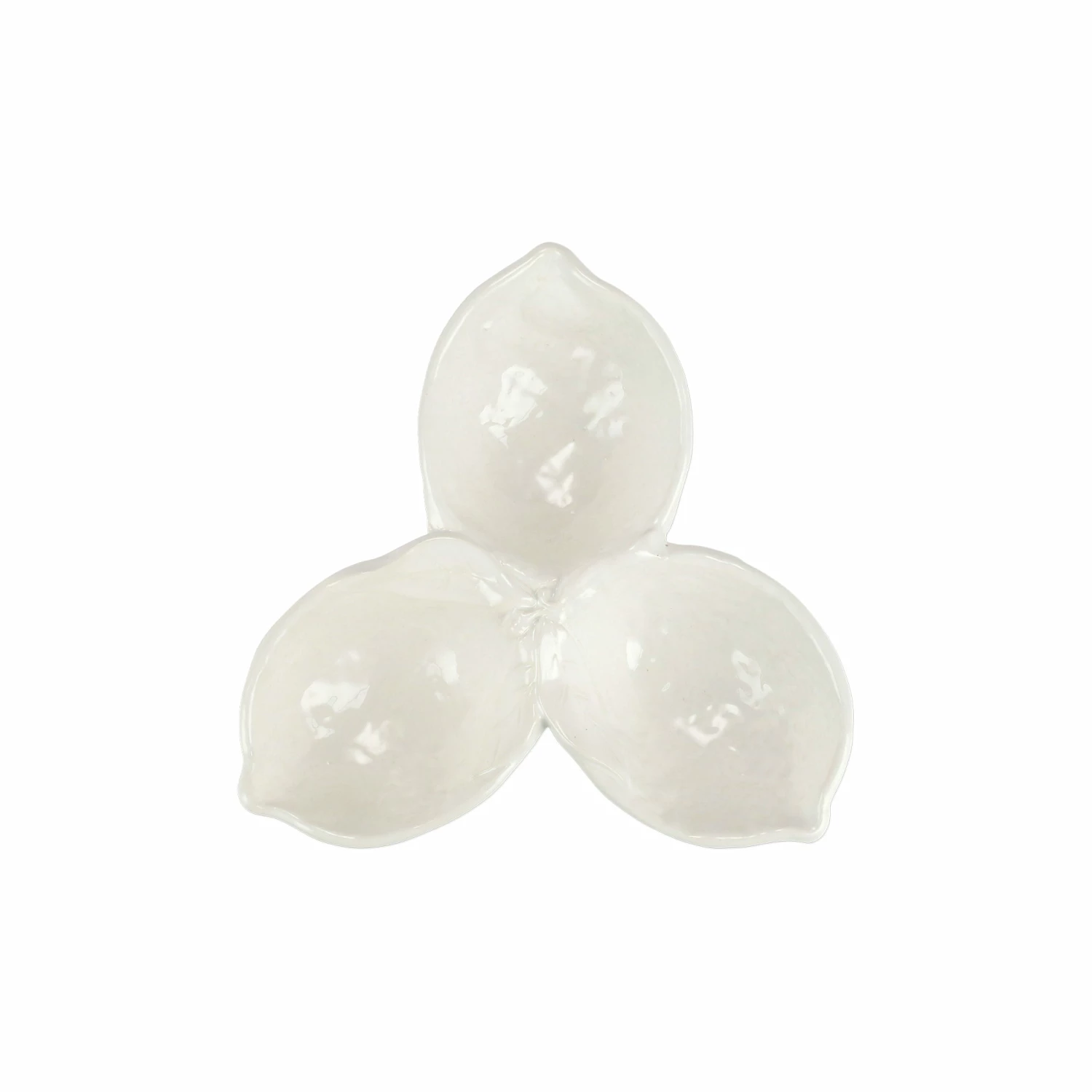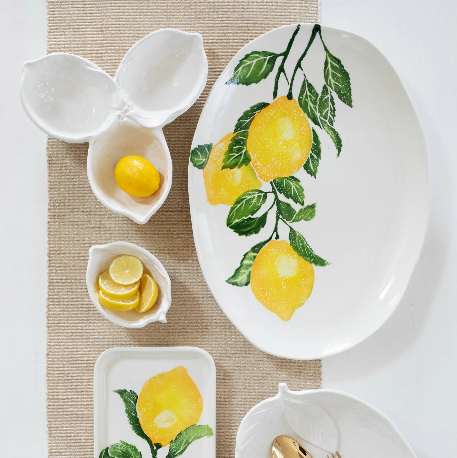 Inspired by the bountiful, robust lemons that flourish in the sunshine along the Amalfi Coast, the Limoni collection is cheerful and iconically Italian. The Limoni White Figural Lemon Three-Part Server is a charming serving piece that will transport you to the Mediterranean.
