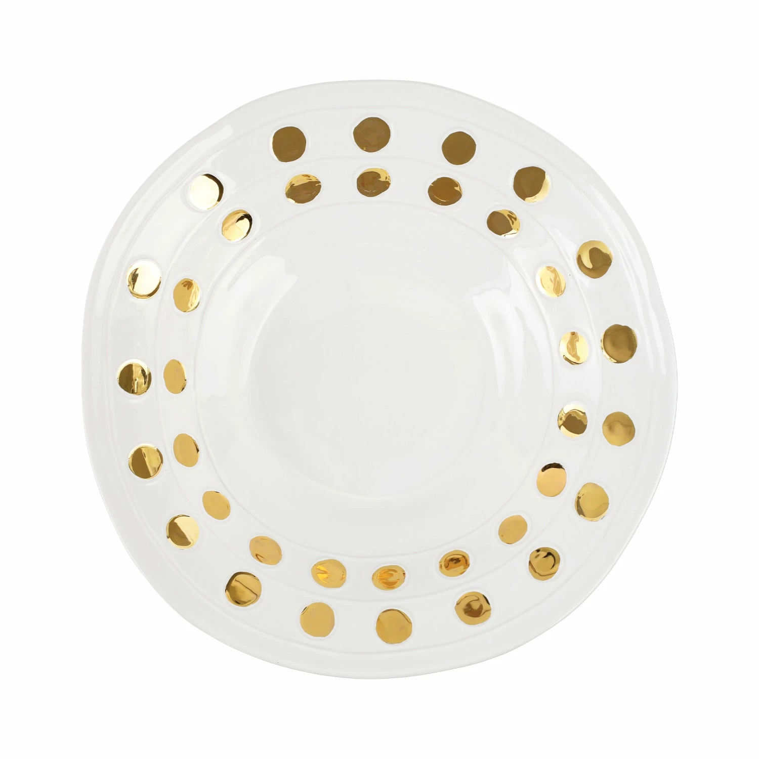 The famed Medicis ruled Florence during the Renaissance. Comprised of bankers and wool merchants, the influential family were patrons of the arts and contributed greatly to the prosperity of Florence. The traditional Medici coat of arms is beautiful and ornate with colors of red, blue, and gold, and our new Medici collection takes a modern spin on it by highlighting one of those components: the golden palle, or balls. At once historic and contemporary, the Medici Gold Large Serving Bowl honors Italian heritage while also exuding fresh inspiration.