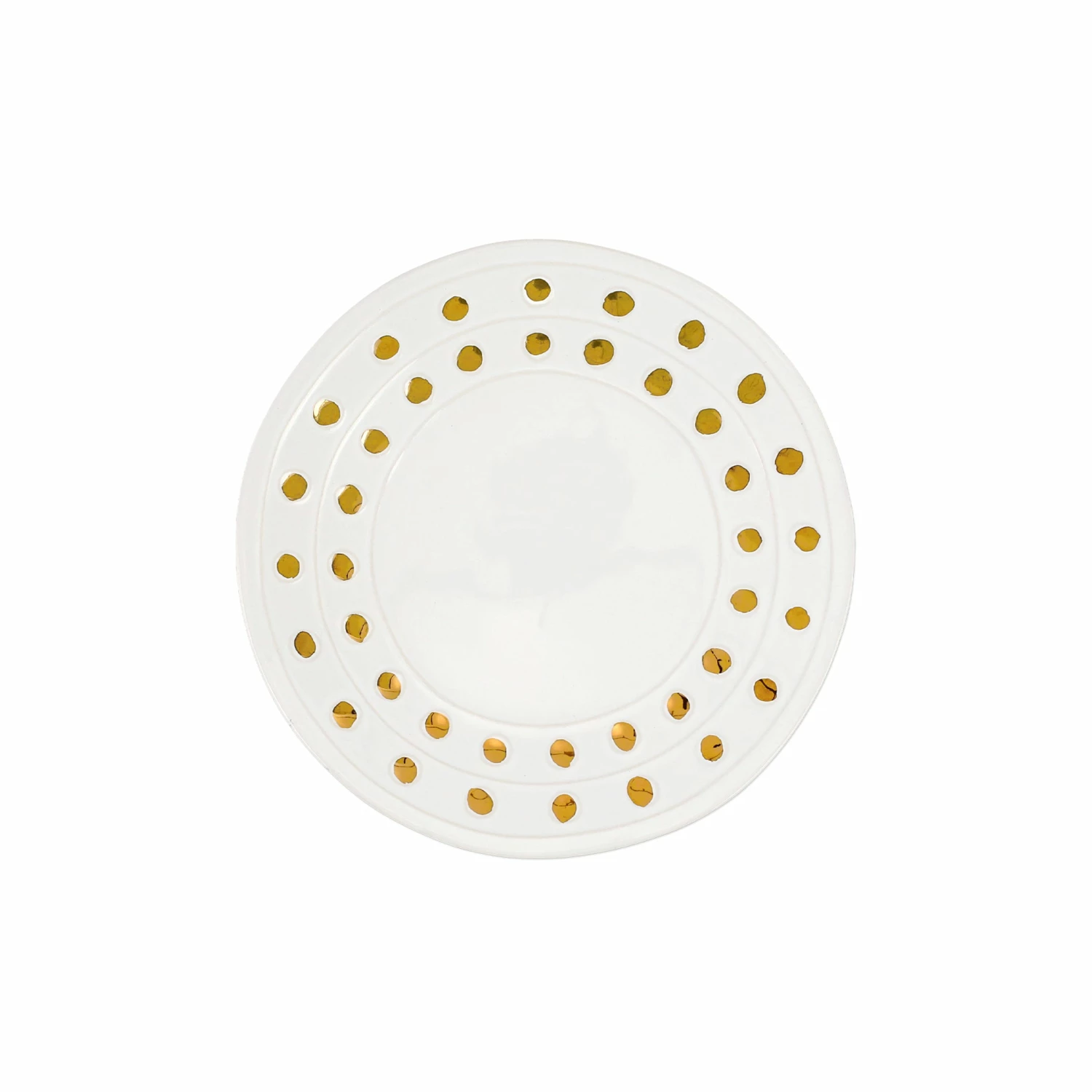 The famed Medicis ruled Florence during the Renaissance. Comprised of bankers and wool merchants, the influential family were patrons of the arts and contributed greatly to the prosperity of Florence. The traditional Medici coat of arms is beautiful and ornate with colors of red, blue, and gold, and our new Medici collection takes a modern spin on it by highlighting one of those components: the golden palle, or balls. At once historic and contemporary, the Medici Gold Salad Plate honors Italian heritage while also exuding fresh inspiration.