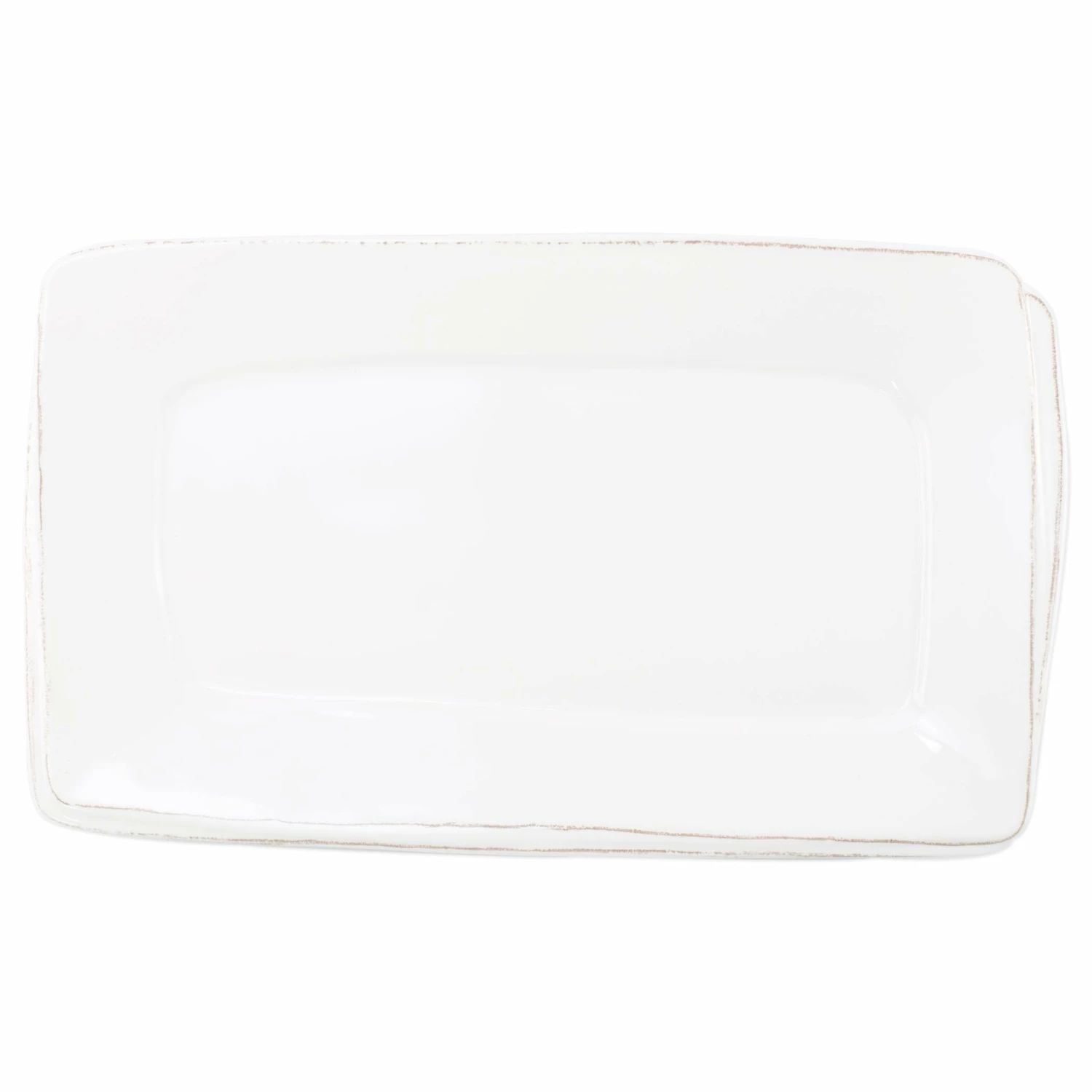 Whether you are serving antipasti or a main dish, the Lastra White Rectangular Platter brings charming, rustic elegance to your home. This platter makes a wonderful wedding gift for any newlywed couple.