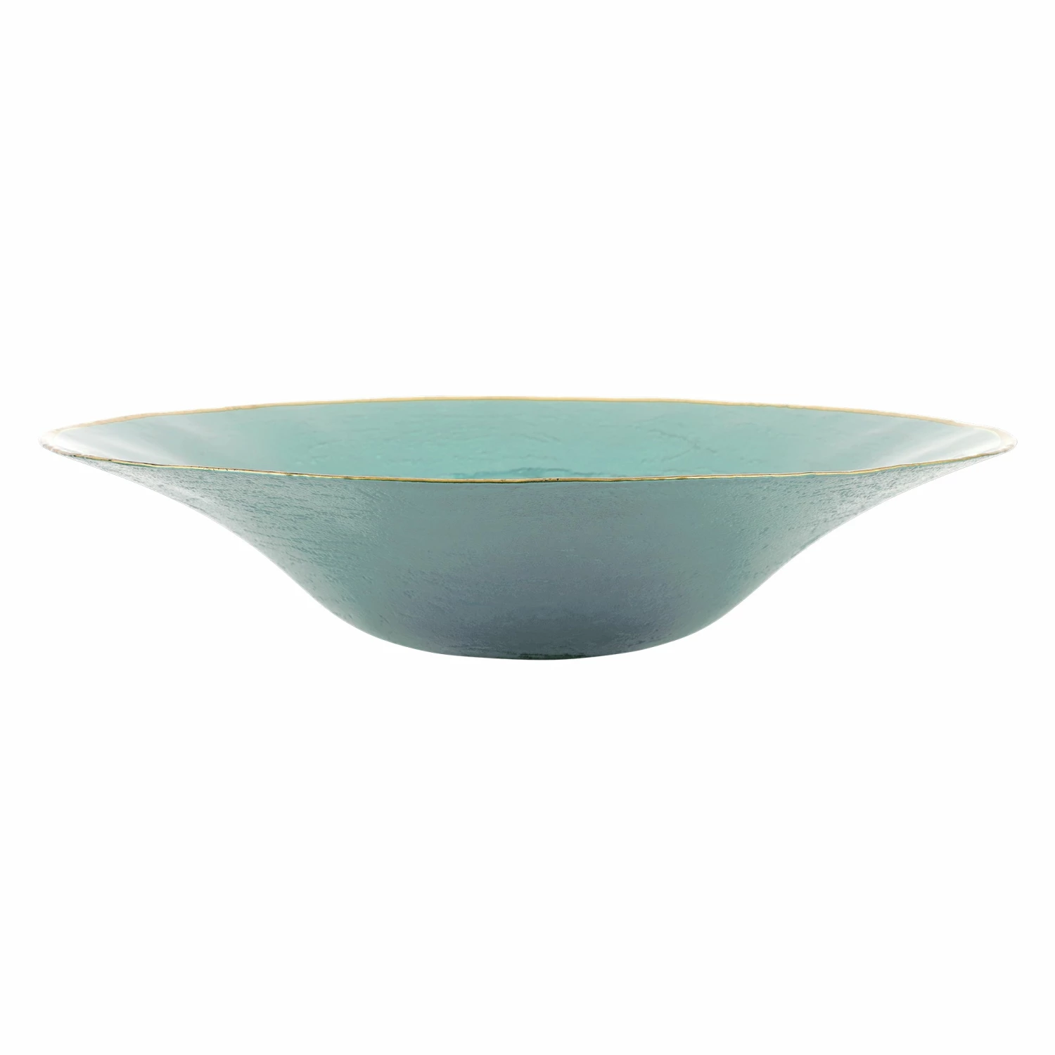 Metallic Glass is a dynamic collection that is at once timeless and modern. With a beautiful, molten effect, each piece is rimmed in gold and instantly elevates any table setting. The Metallic Glass Aquamarine Centerpiece exudes timeless glamour and is made to be mixed and matched with other Metallic Glass pieces.