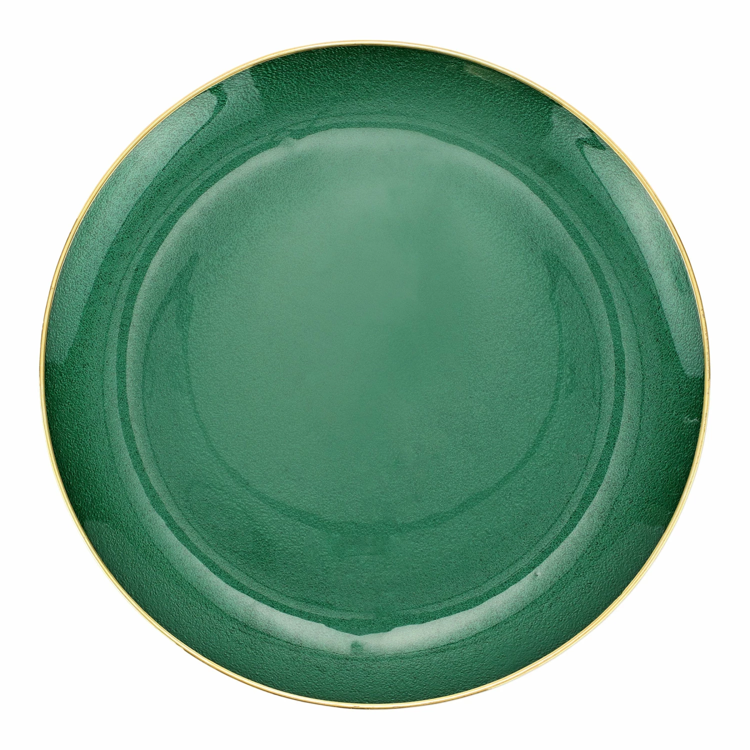 Metallic Glass is a dynamic collection that is at once timeless and modern. With a beautiful, molten effect, each piece is rimmed in gold and instantly elevates any table setting. The Metallic Glass Emerald Platter exudes timeless glamour and is a statement piece on its own or mixed with other Metallic Glass pieces.