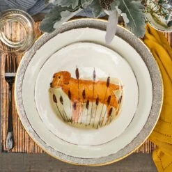Metallic Glass is a dynamic collection that is at once timeless and modern. With a beautiful, molten effect, each piece is rimmed in gold and instantly elevates any table setting. The Metallic Glass Fawn Platter exudes timeless glamour and is a statement piece on its own or mixed with other Metallic Glass pieces.