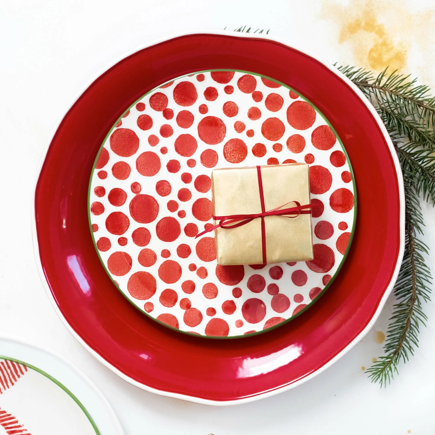 Festive and playful, the Mistletoe Bubble Salad Plate is intended for the everyday entertainer, especially during the hustle and bustle of the holiday season. Become the hostess with the mostess or the go-to gifter with this festive pattern.