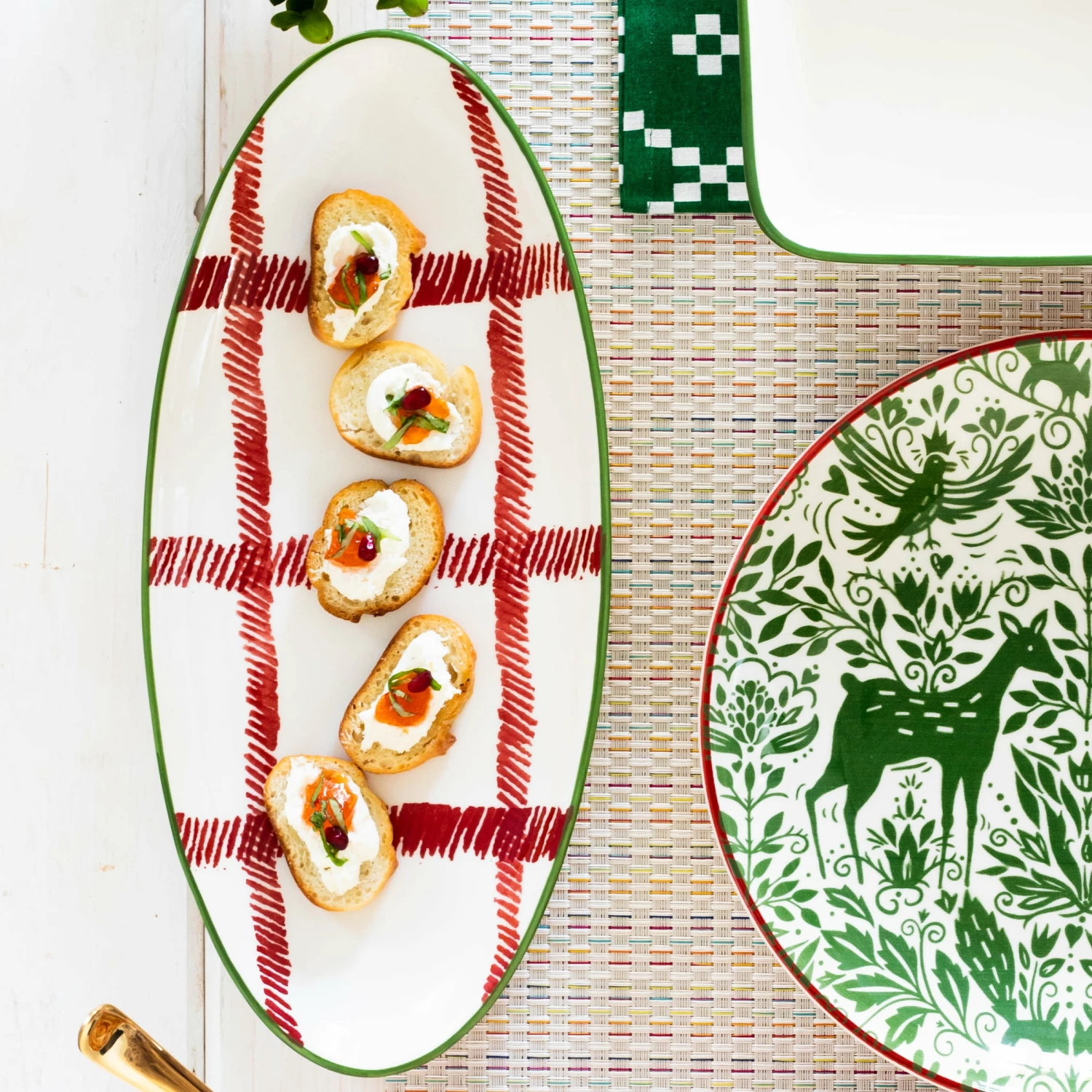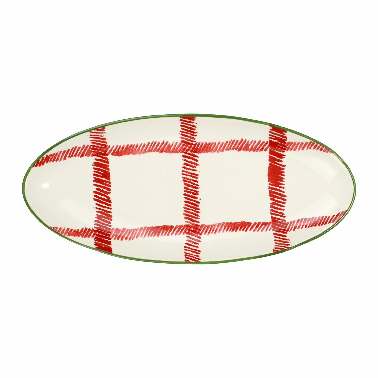Festive and playful, the Mistletoe Plaid Narrow Oval Platter is intended for the everyday entertainer, especially during the hustle and bustle of the holiday season. Become the hostess with the mostess or the go-to gifter with this festive pattern.