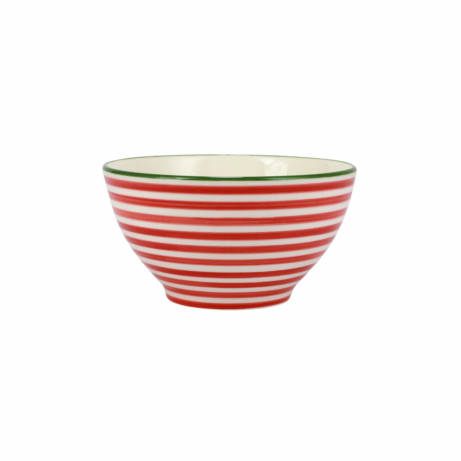 Festive and playful, the Mistletoe Stripe Cereal Bowl is intended for the everyday entertainer, especially during the hustle and bustle of the holiday season. Become the hostess with the mostess or the go-to gifter with this festive pattern.