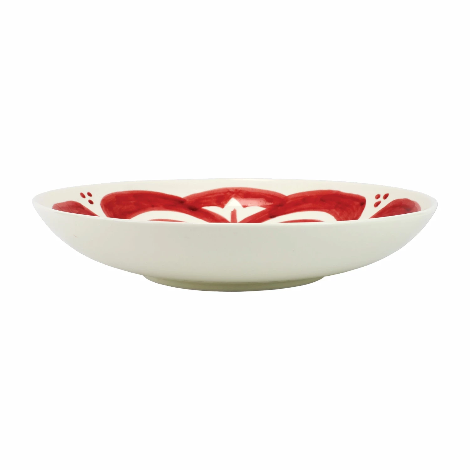 Inspired by the handpainted tiles found throughout Italy, especially Sicily, Mosaico delights in bold tones of sapphire blue, vibrant red, and crisp white. A striking centerpiece, the Mosaico Red Round Shallow Bowl is at home in traditional and contemporary settings alike.