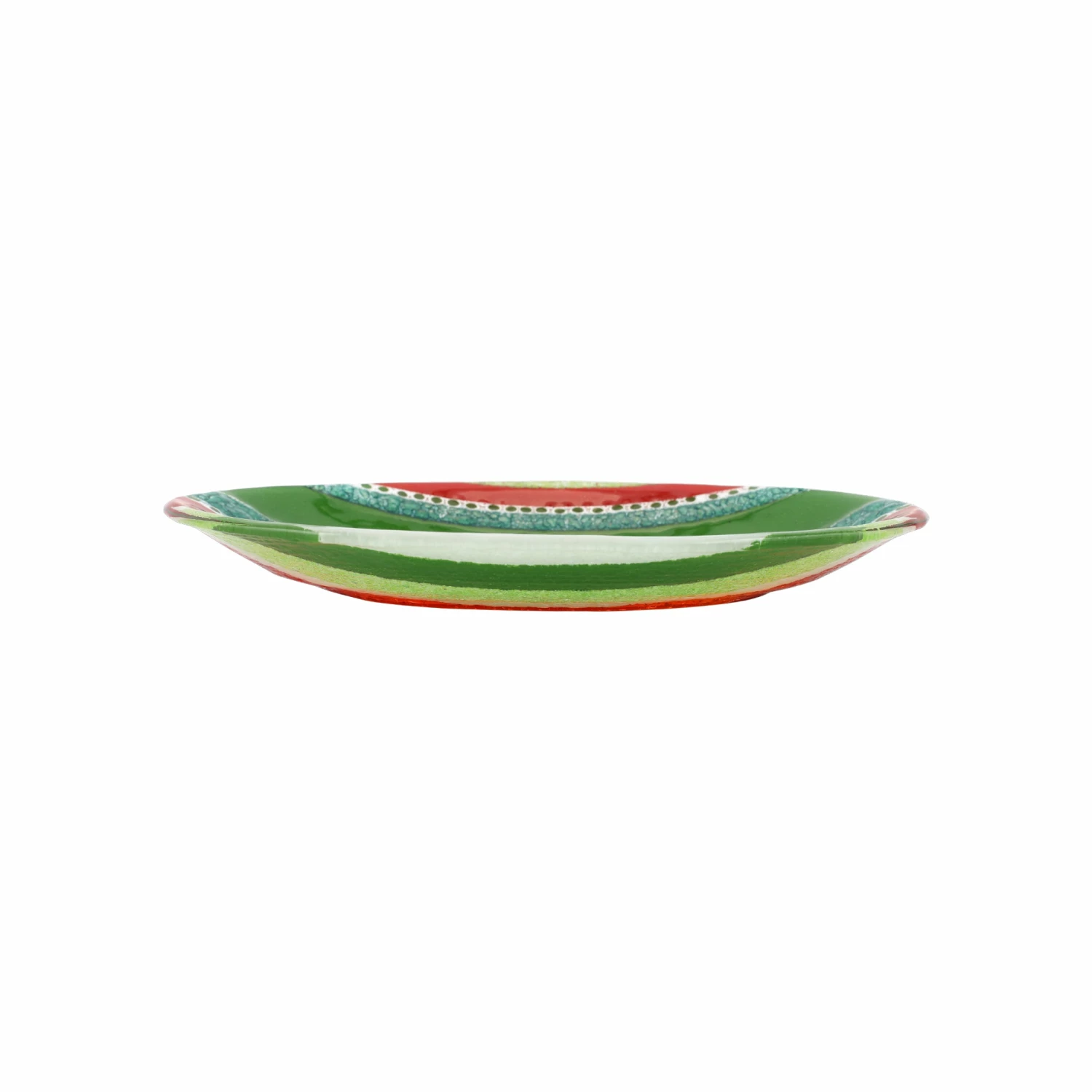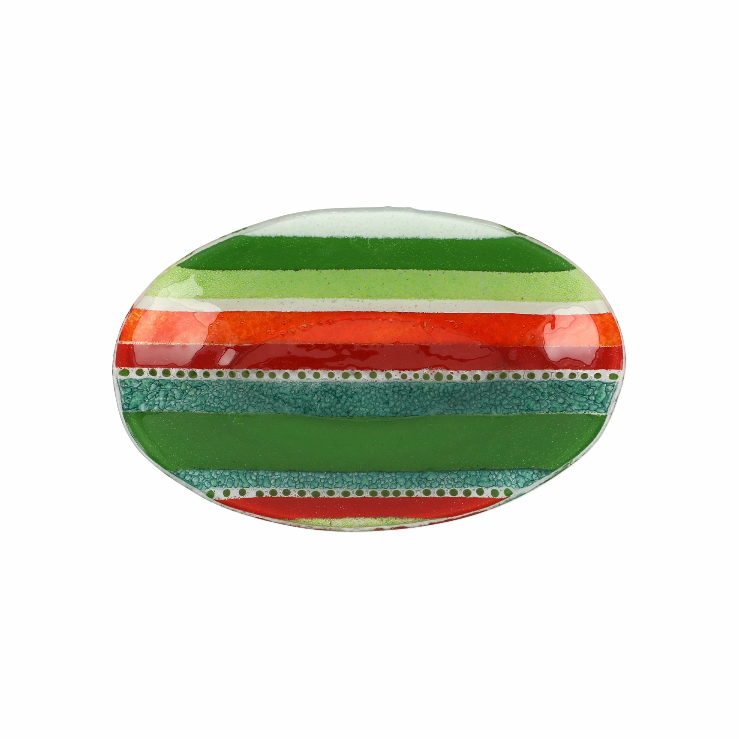 Bring the spirit of the holidays alive with bright colors and festive shapes. Each festive Natale Glass Small Oval Bowl is carefully decorated by hand before undergoing a 12-hour fusion process where the colors and the glass fuse together to create a beautiful piece of art.