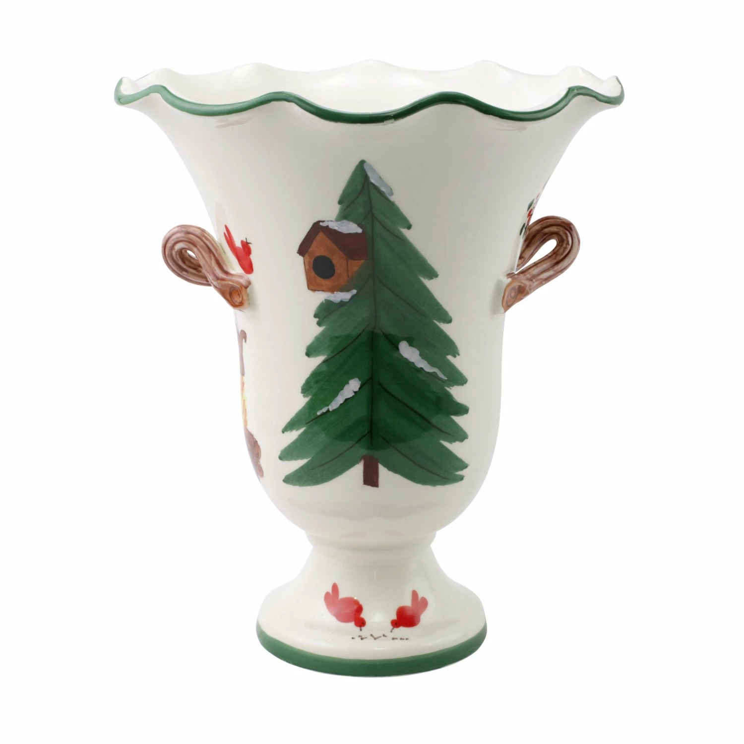 Maestro artisan, Alessandro Taddei, relays childhood memories of stories his mother used to read to him about Babbo Natale, Italy’s Santa Claus, through the whimsical design of the Old St. Nick Large Footed Cachepot w/ Campfire providing us a glimpse into daily adventures leading up to each holiday season.