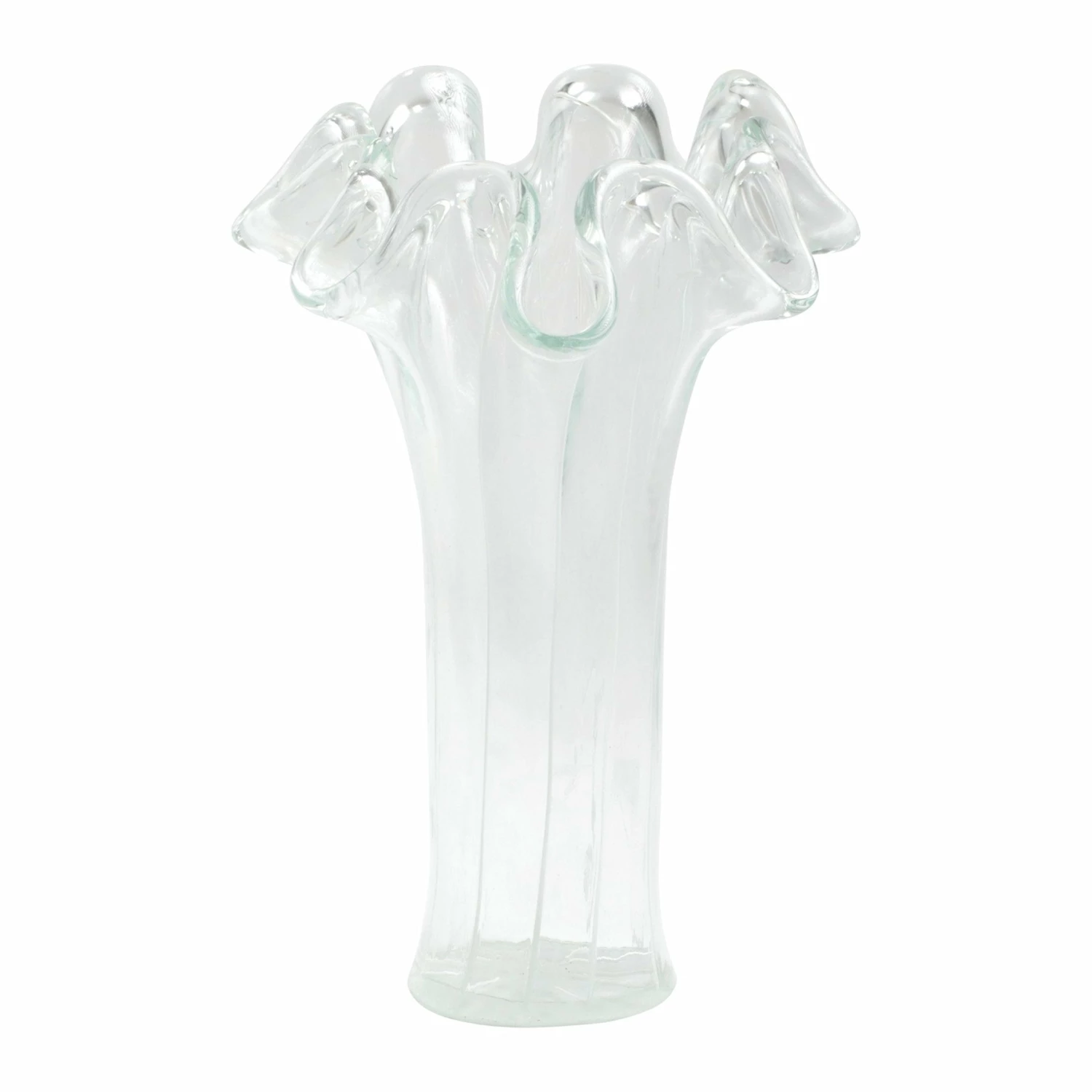 Mouthblown in Italy, the Onda Glass Clear w/ White Lines Tall Vase makes a sophisticated centerpiece on its own or filled with flowers freshly picked from your garden, or given by someone special.