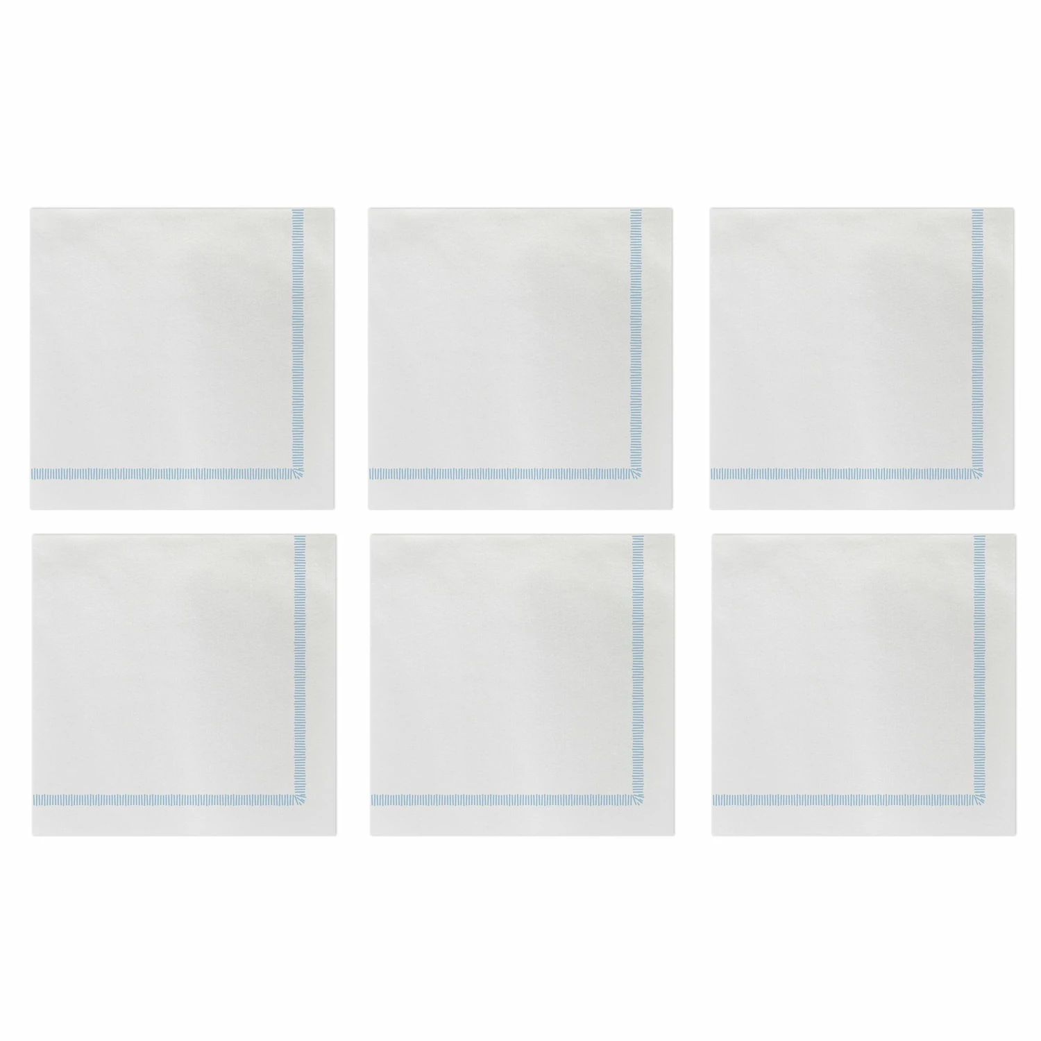 Papersoft Napkins Fringe Light Blue Cocktail Napkins are highly absorbent and made of a fibrous material (spunlace) in Italy. Luxurious and practical, these napkins elevate every meal. A wonderful gift for a hostess!