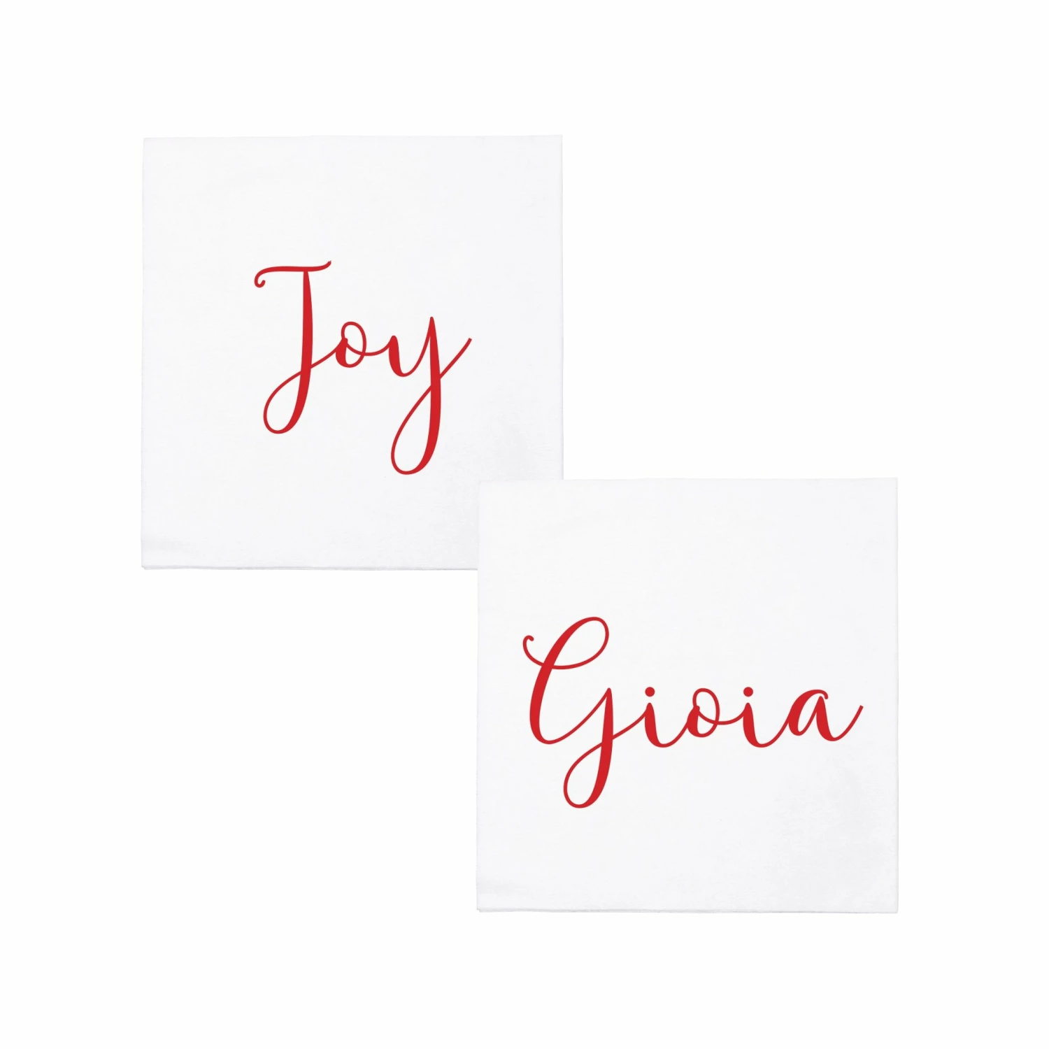 Papersoft Napkins Joy/Gioia Cocktail Napkins are highly absorbent and made of a fibrous material (spunlace) in Italy. An easy grab-and-go gift for the hostess or a fun addition to your last-minute dinner party, these napkins are perfect for the holidays.