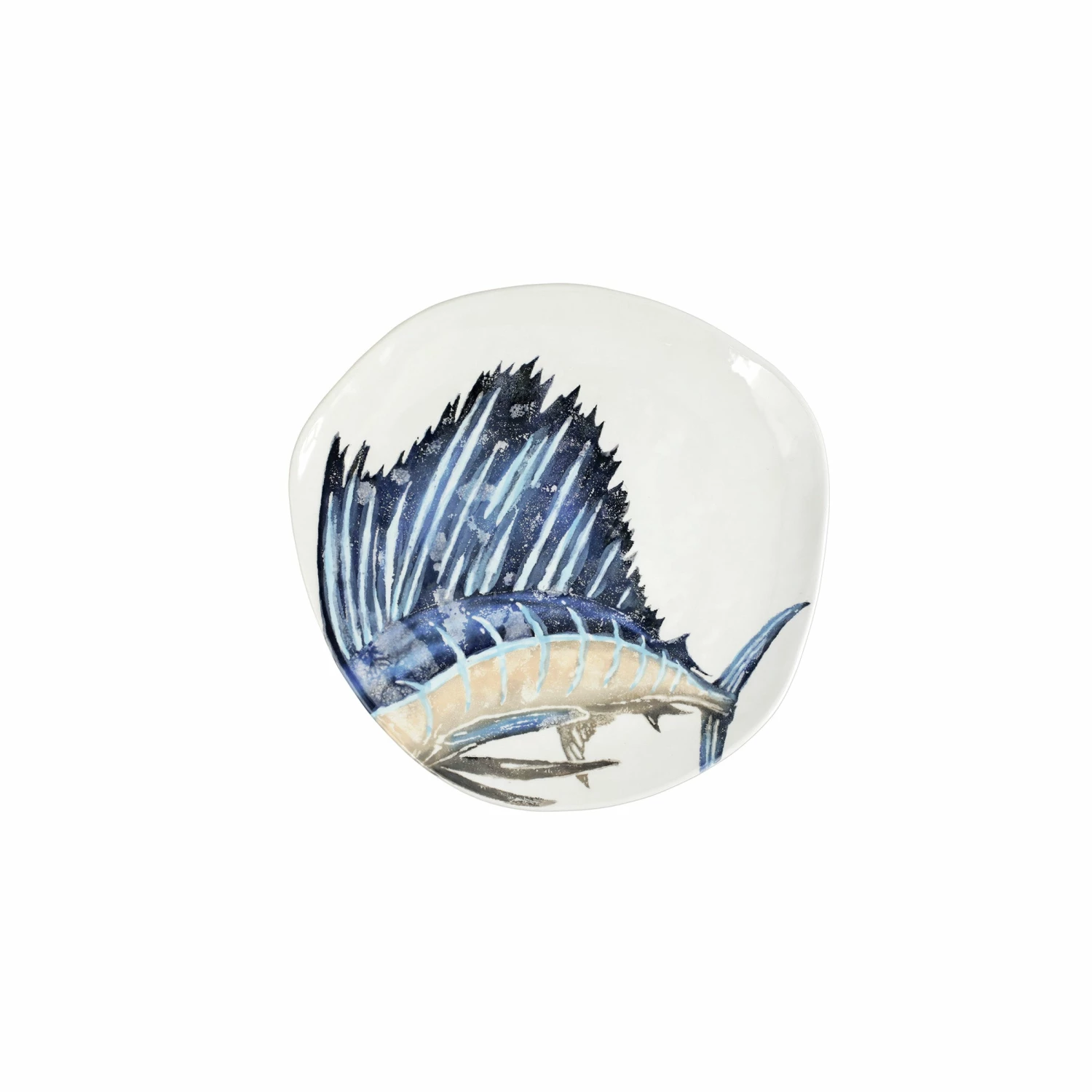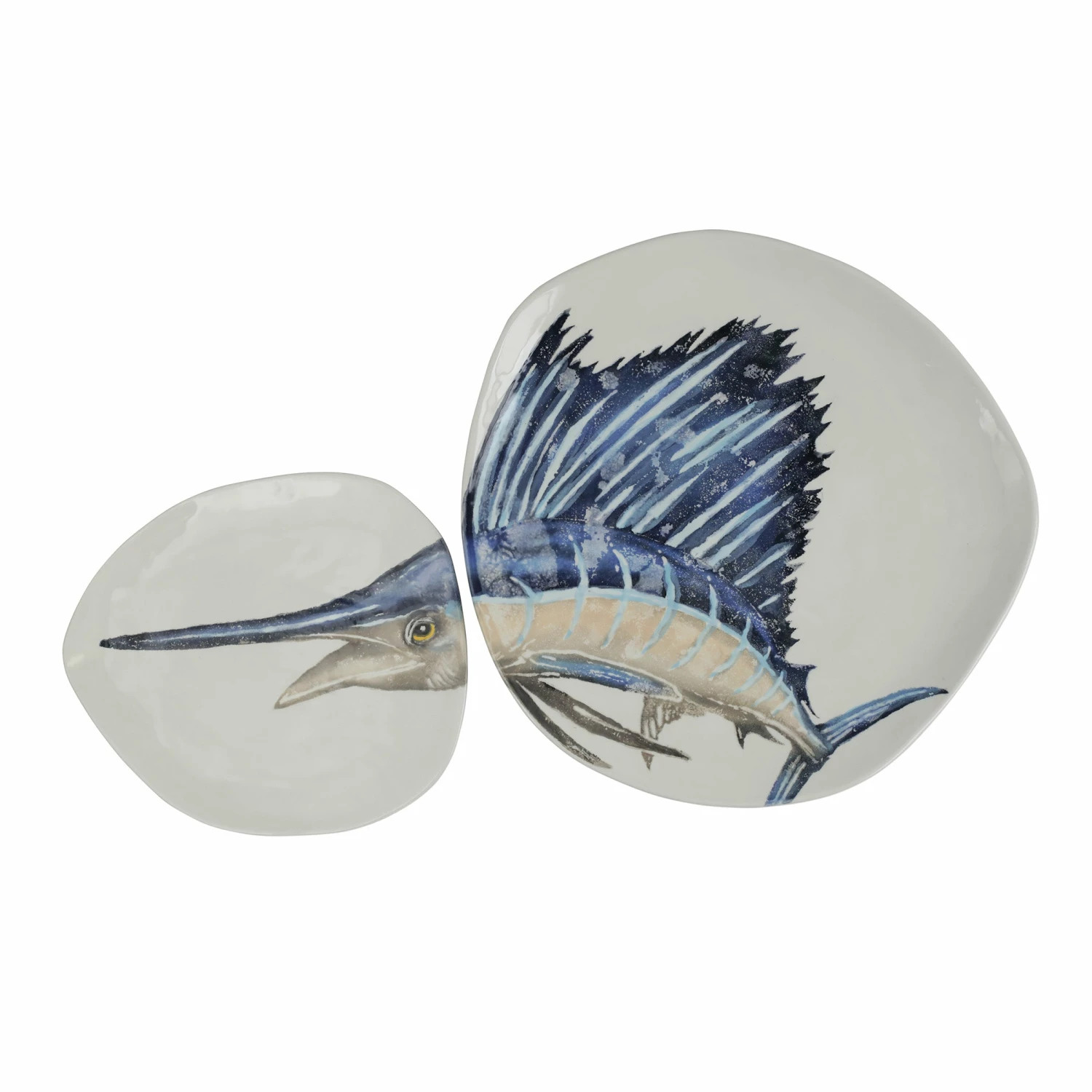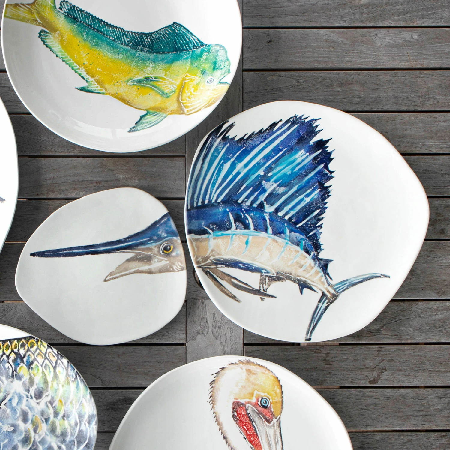Interpreted from a walk on a Santa Barbara pier, the Pesca Blue Marlin Set features a classic fishing subject the Italian way.