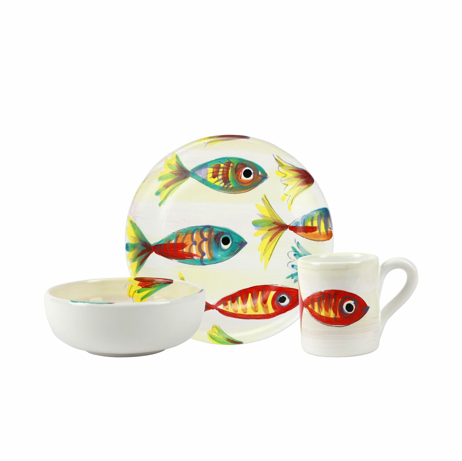 A joyful and vibrant collection, Pesci Colorati features handpainted designs inspired by the bright and colorful fish of the Mediterranean. The Pesci Colorati Bambini Set includes a plate, mug, and bowl, and is a guaranteed way to bring delight to a little oneβs face.