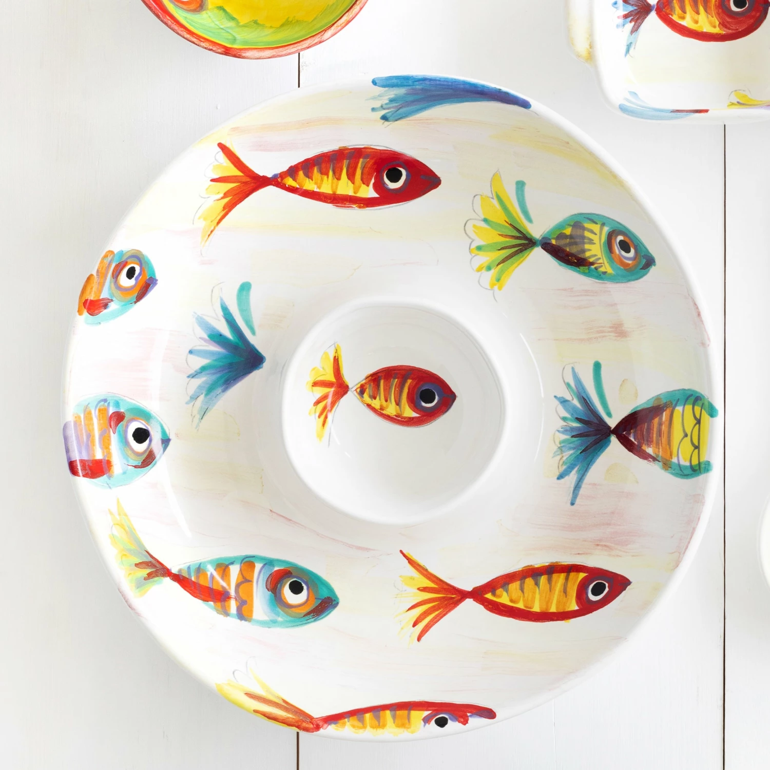A joyful and vibrant collection, Pesci Colorati features handpainted designs inspired by the bright and colorful fish of the Mediterranean. The Pesci Colorati Chip and Dip brings delight and Italian craftsmanship to all of your gatherings.
