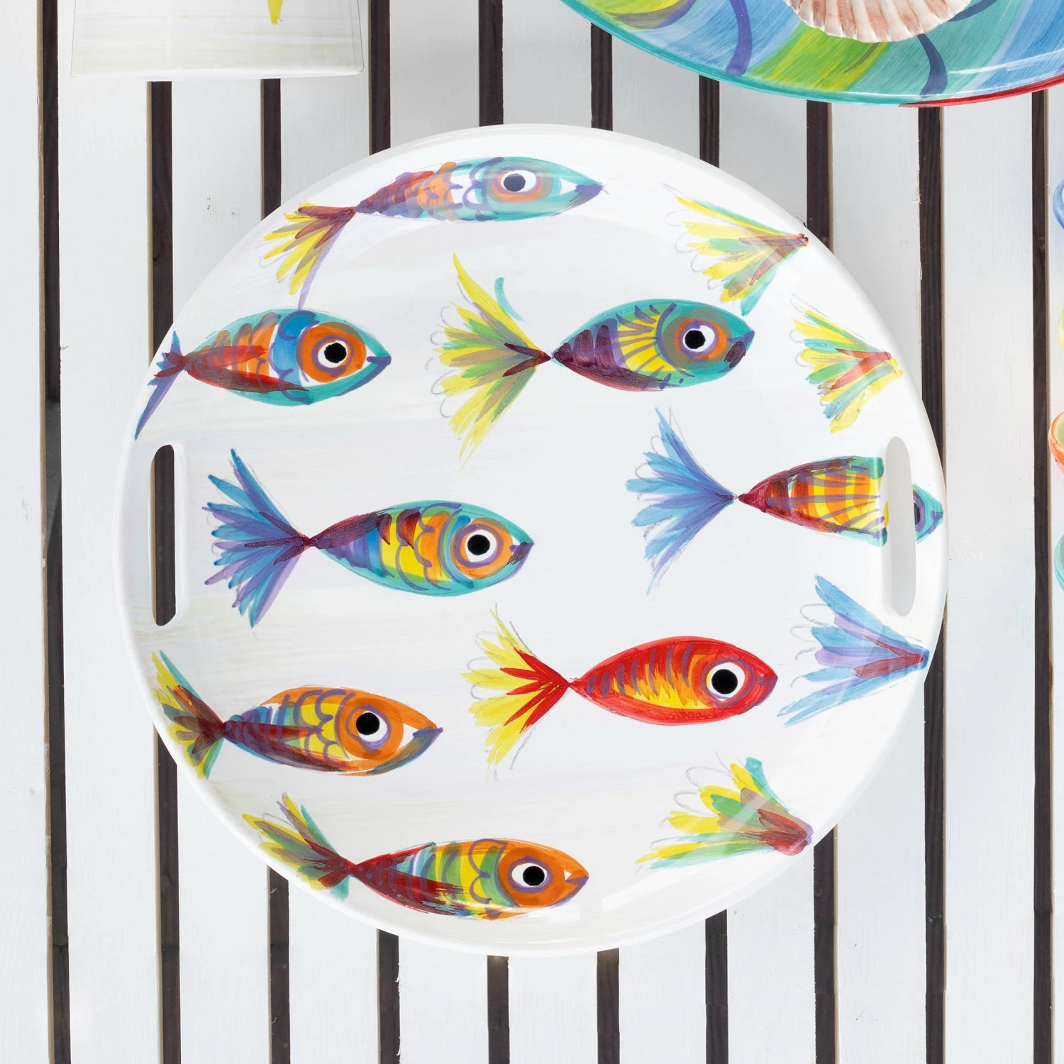 A traditional school of fish was the original inspiration for the Pesci Colorati Handled Round Tray. Our maestro artisans put their signature spin on the design with layers of color in handpainted detail to add variety and texture.