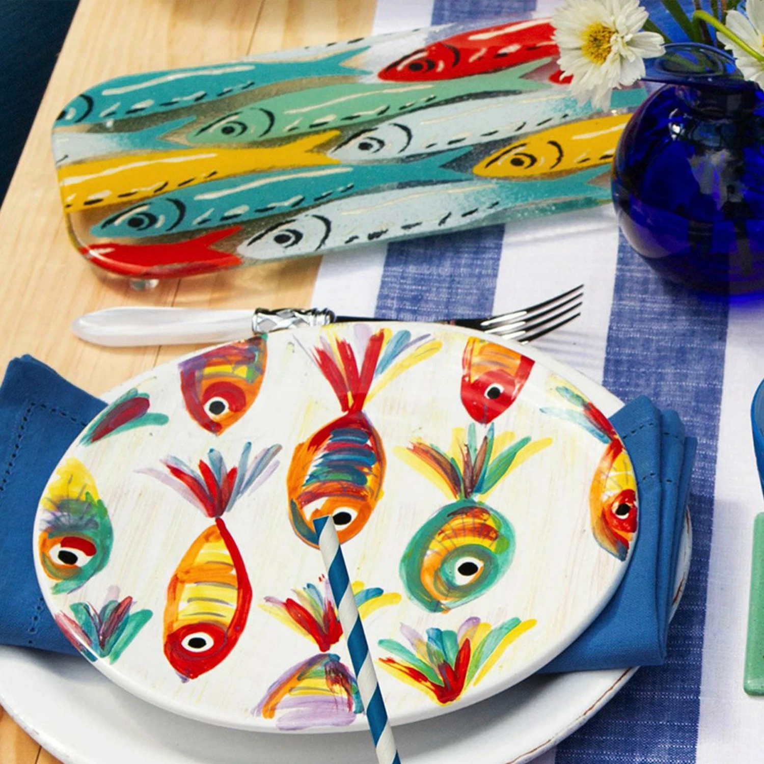 A traditional school of fish was the original inspiration for the Pesci Colorati Medium Cutting Board. Our maestro artisans put their signature spin on the design with layers of color in handpainted detail to add variety and texture.