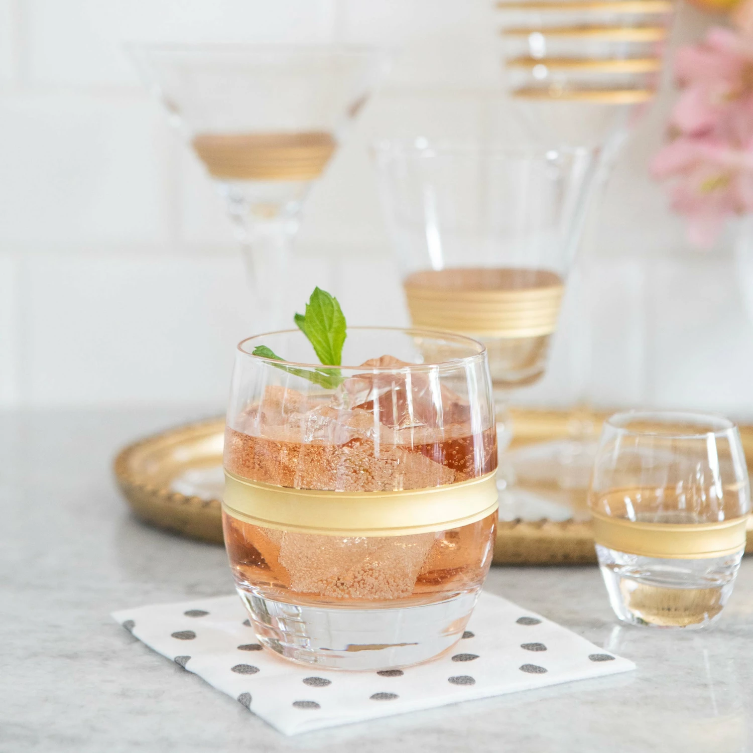A gilded gold design encircles the classic shape of the Raffaello Banded Double Old Fashioned.
