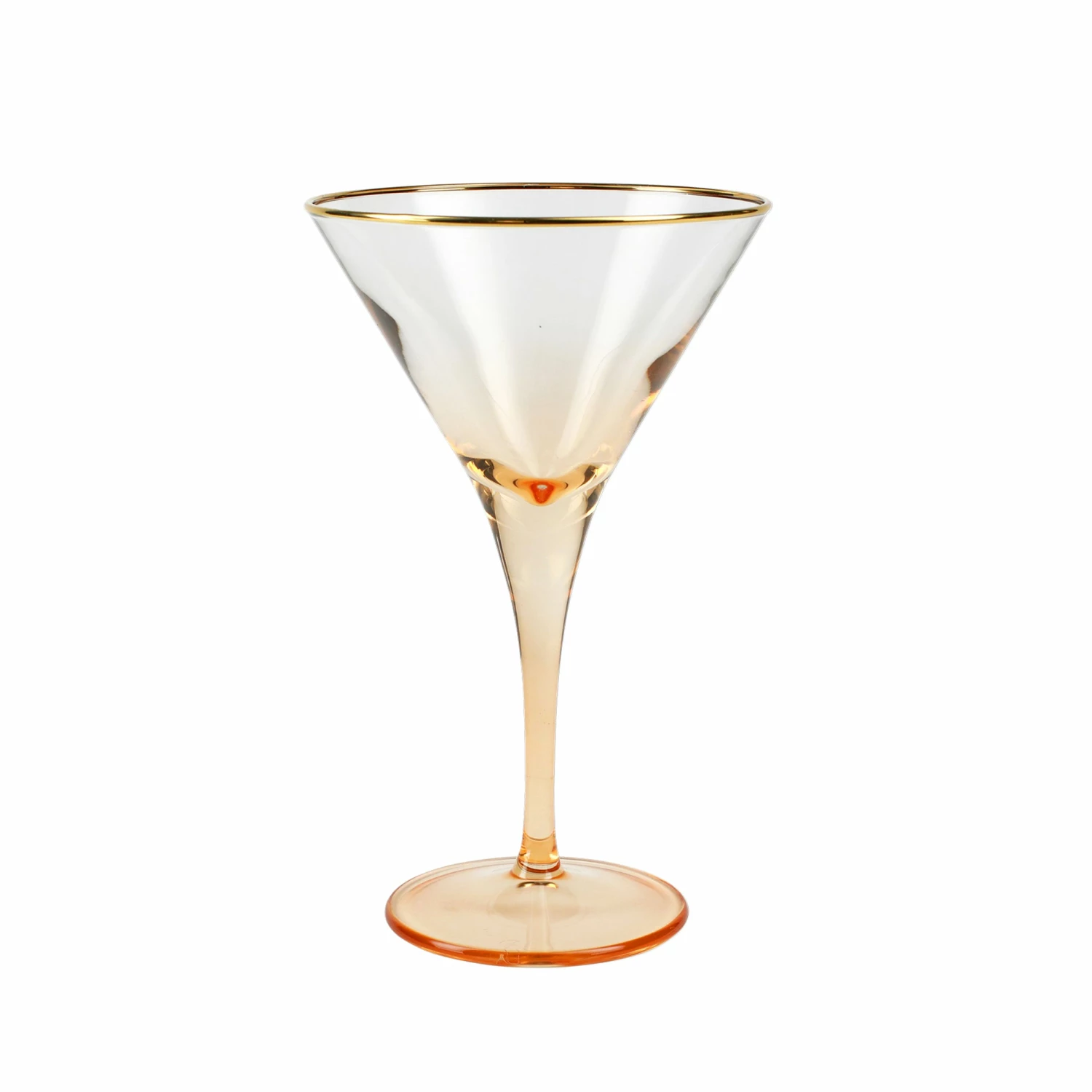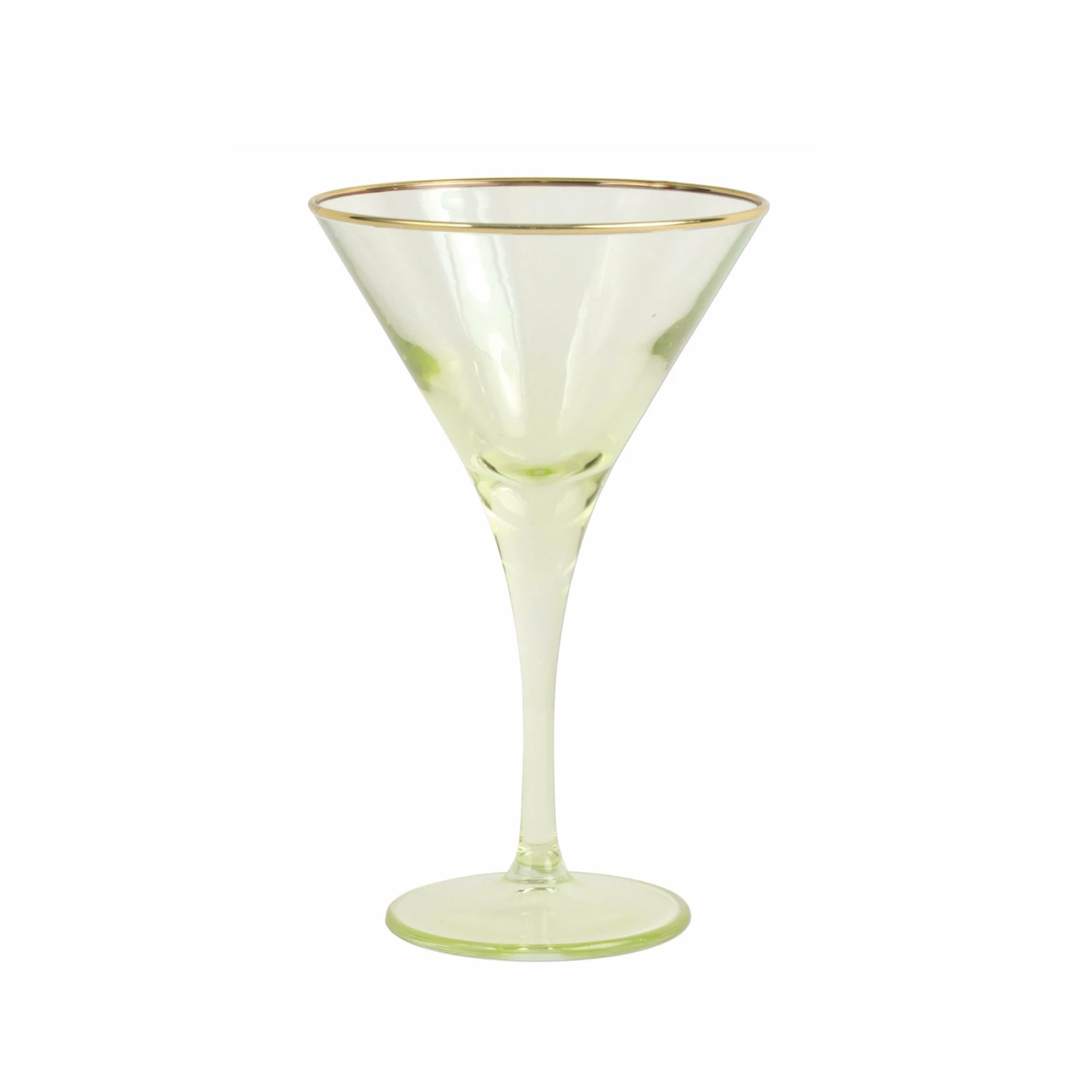 Add sparkle to any setting with a gilded gold rim and varied colored glass that refracts light on the Rainbow Martini Glass.