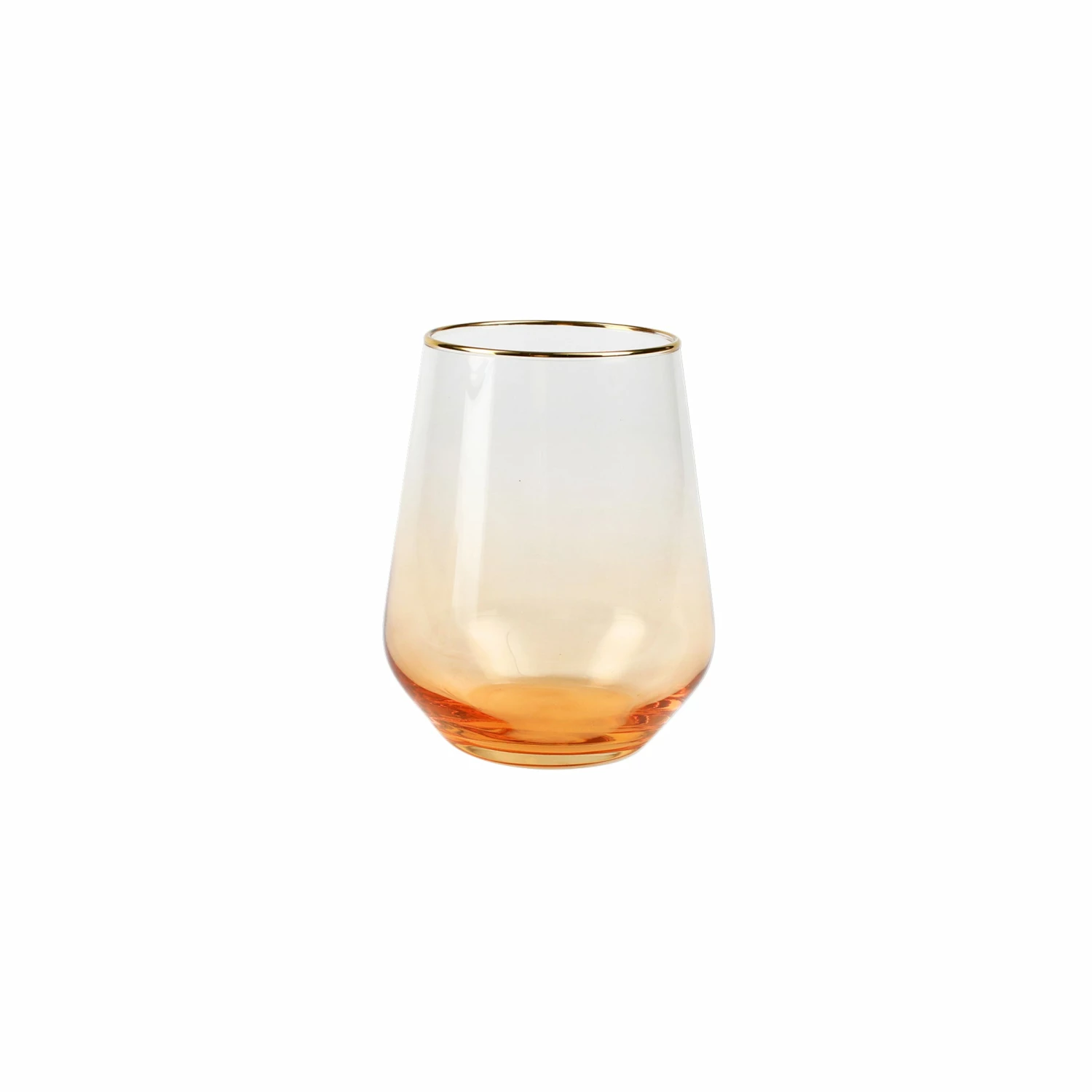 Add sparkle to any setting with a gilded gold rim and varied colored glass that refracts light on the Rainbow Stemless Wine Glass.
