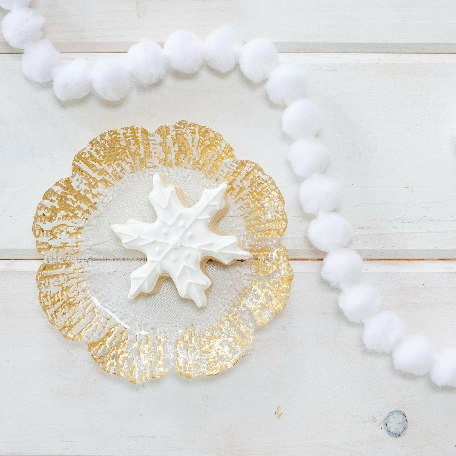 Bring shimmer to your celebrations with golden strands on this Rufolo Glass Gold Canape Plate.