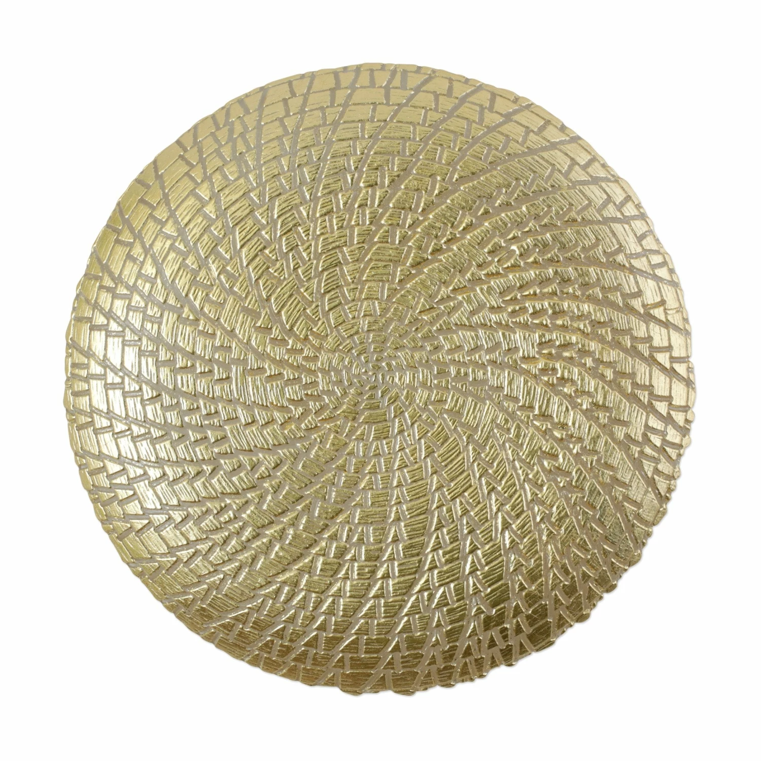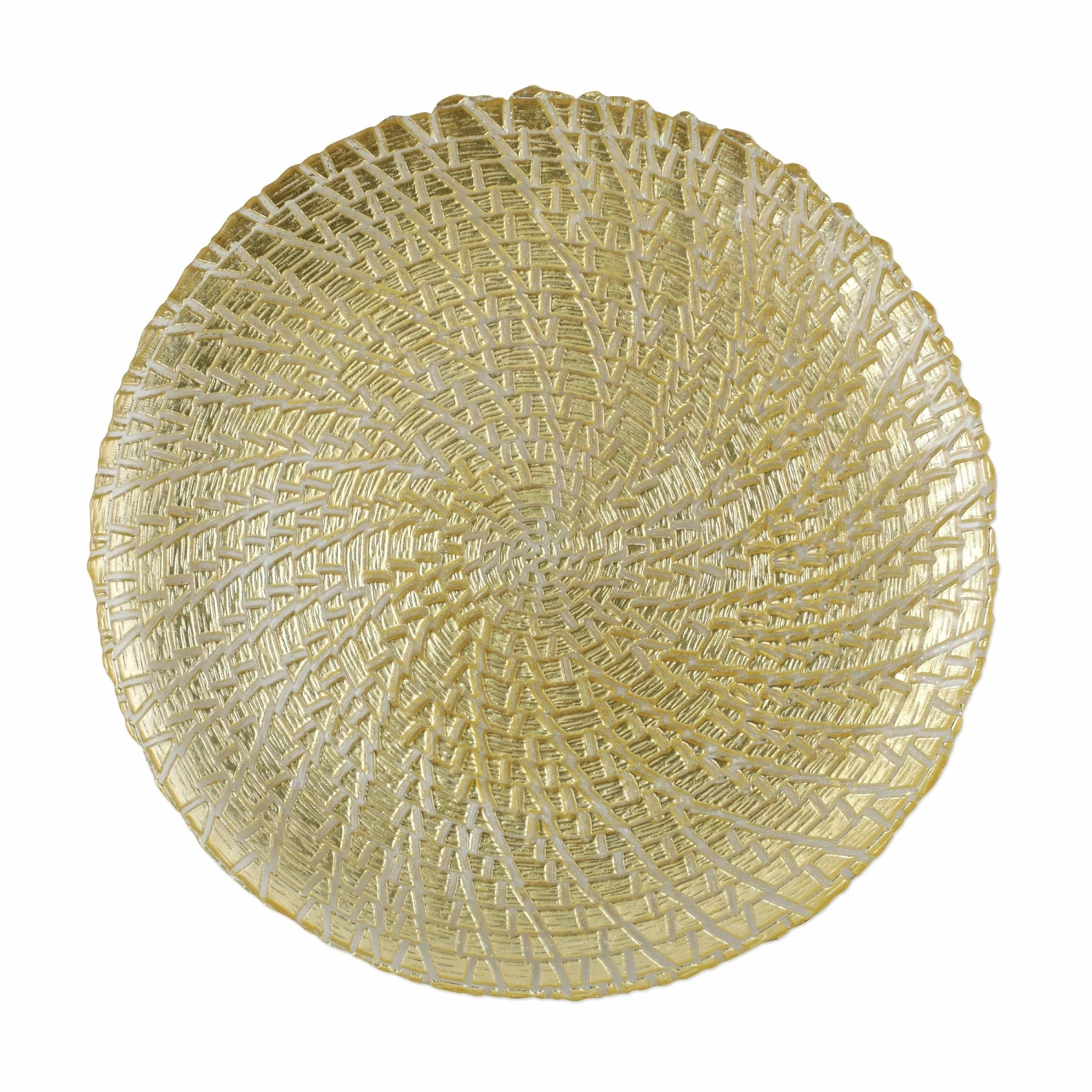 The Rufolo Glass Gold Crocodile Service Plate/Charger brings luster to your table. The glass piece is encircled with glowing golden strands, and the embellishment is effortlessly beautiful.