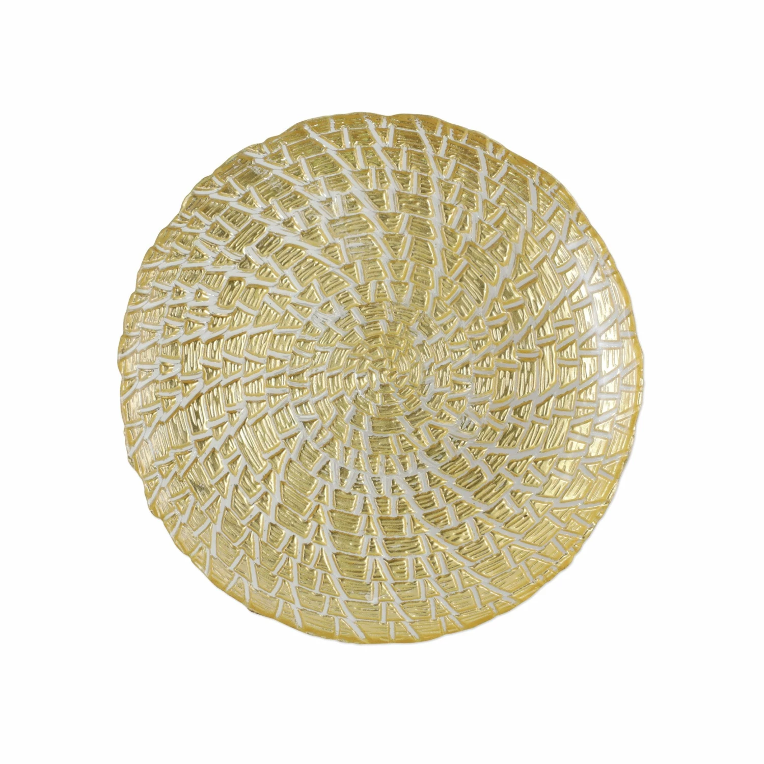 The Rufolo Glass Gold Crocodile Small Cake Stand brings luster to your table. The glass piece is encircled with glowing golden strands, and the embellishment is effortlessly beautiful.