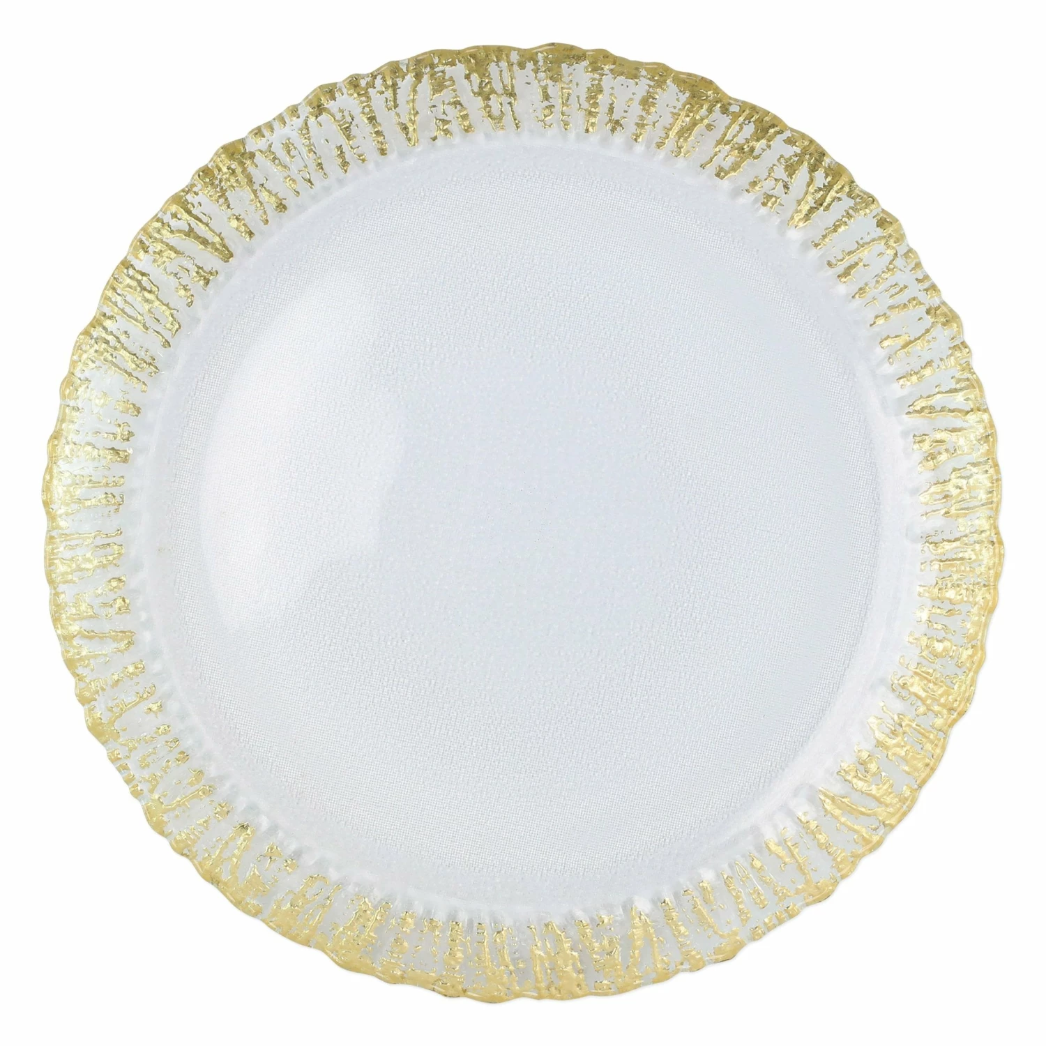 The Rufolo Glass Gold Round Platter features golden strands on the border of the elegantly sophisticated platter. The embellishment is effortlessly beautiful.