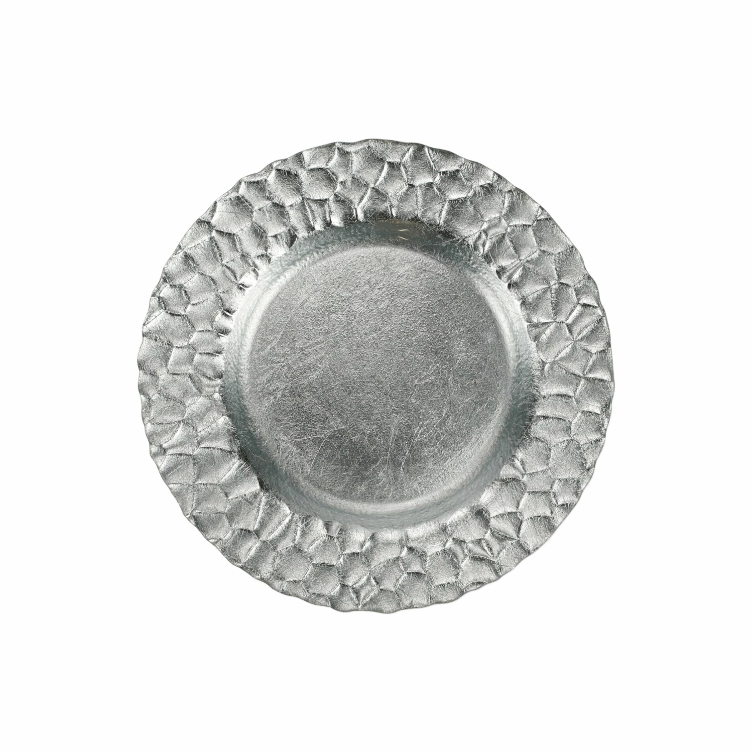 The Rufolo Glass Platinum Honeycomb Salad Plate brings luster to your table. The glass piece features an organic, striking honeycomb pattern, and the final result makes a glimmering statement.