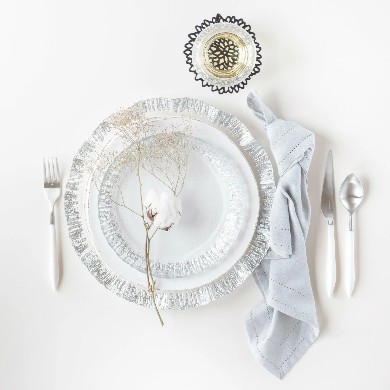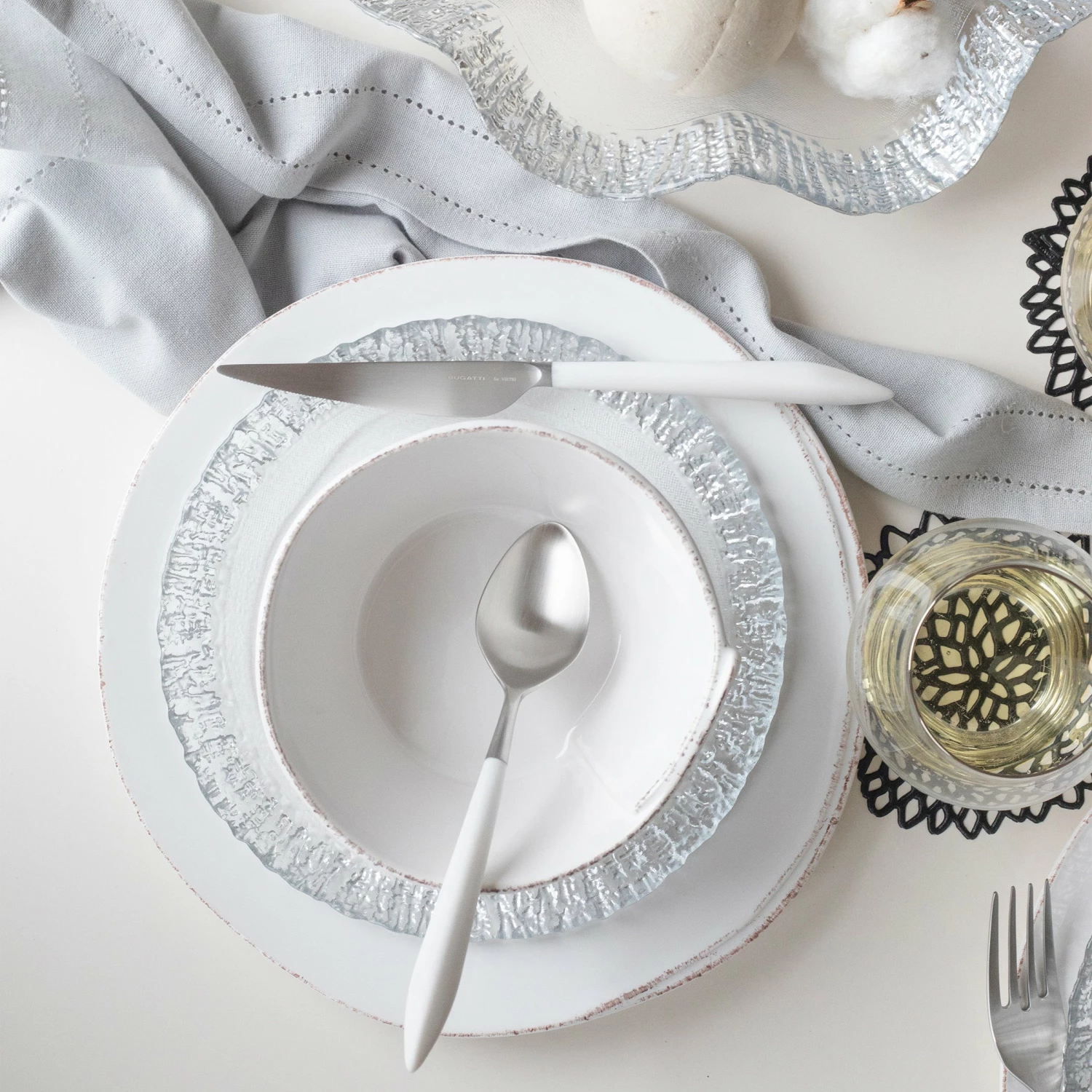 With glowing strands and beautiful texture, the Rufolo Glass Platinum Salad Plate brings luster, glamour, and irresistibly Italian style to your table.