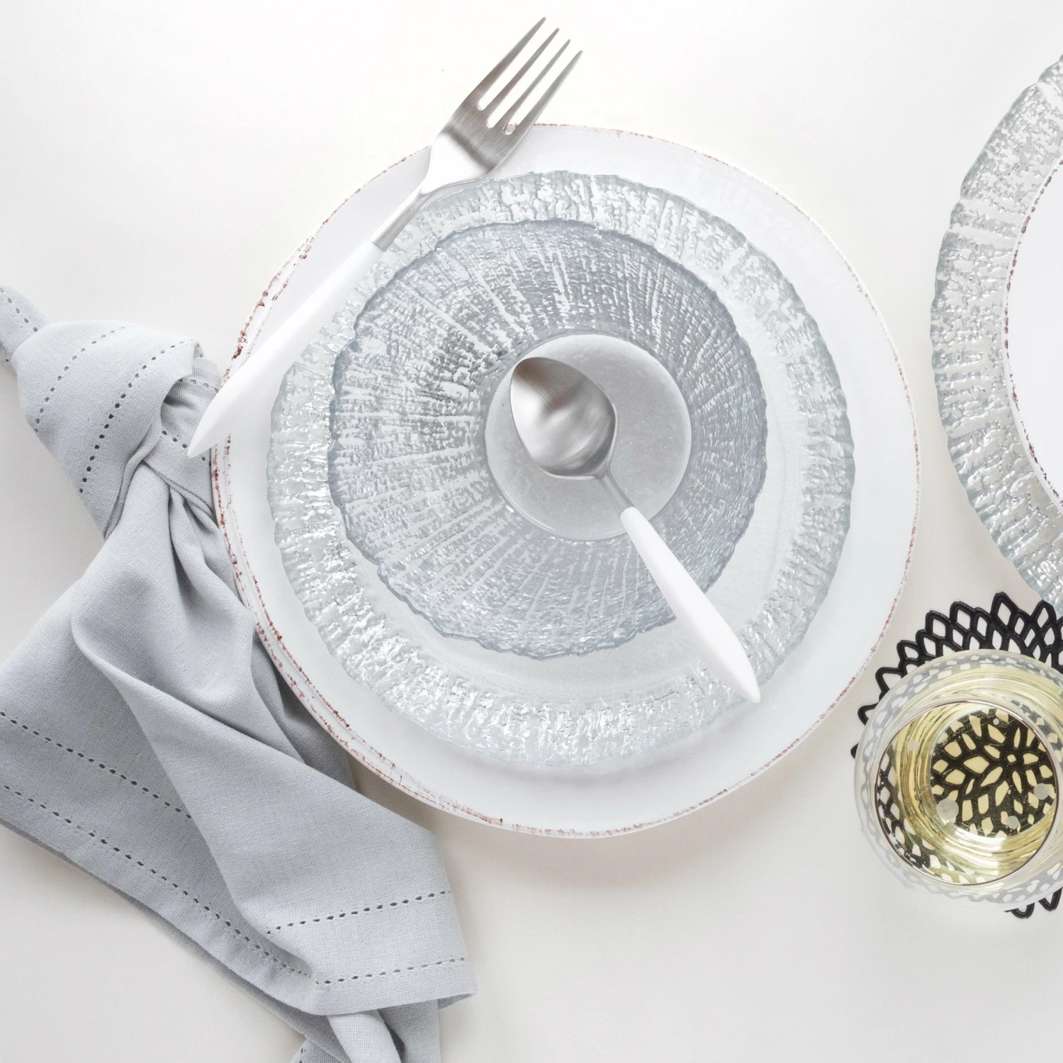 With glowing strands and beautiful texture, the Rufolo Glass Platinum Small Deep Bowl brings luster, glamour, and irresistibly Italian style to your table.