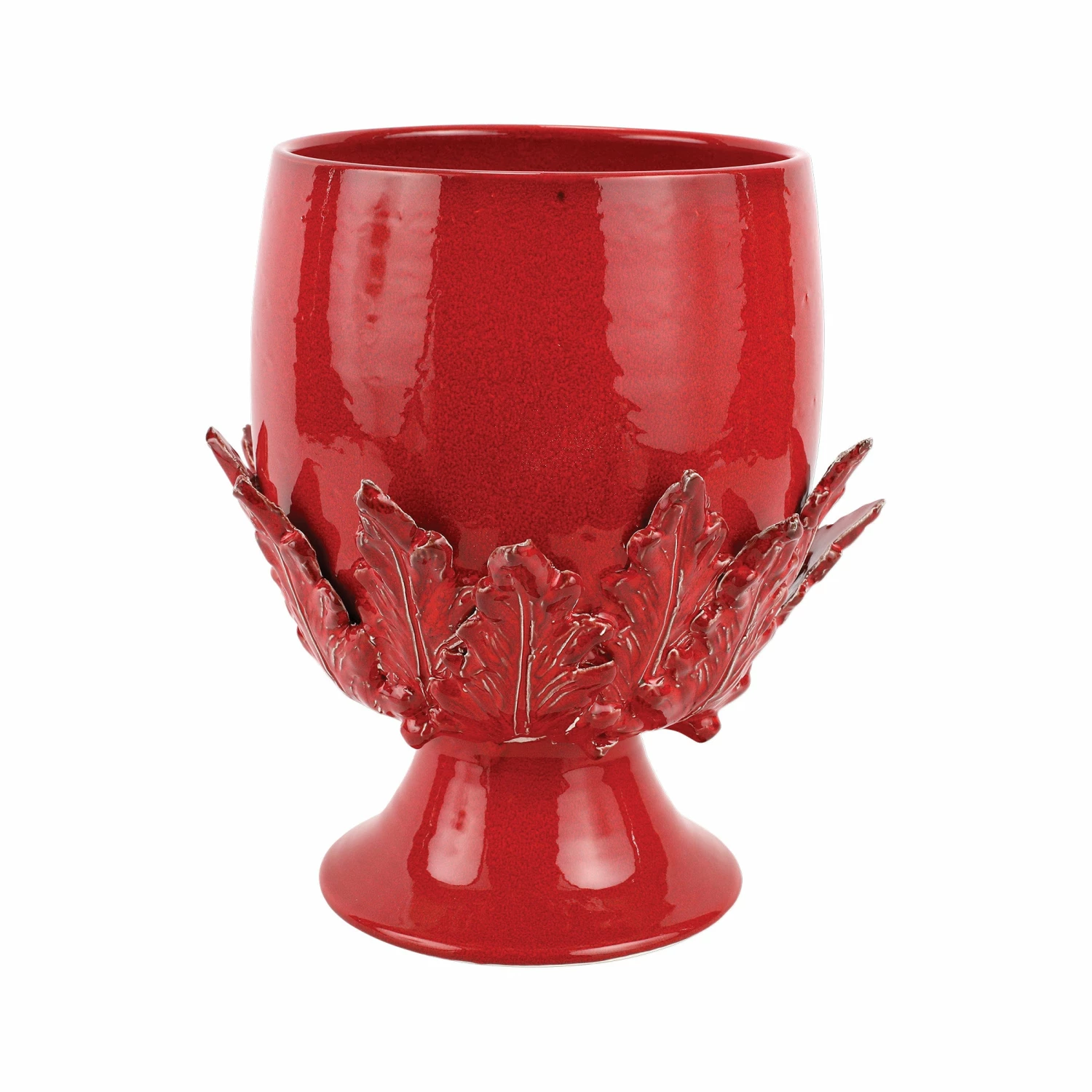 With its handsculpted, intricate petals, the Rustic Garden Red Acanthus Leaf Large Footed Cachepot is a beautiful and unique way to bring Italian style into your home and garden. Pair this piece with a potted plant for a thoughtful gift.