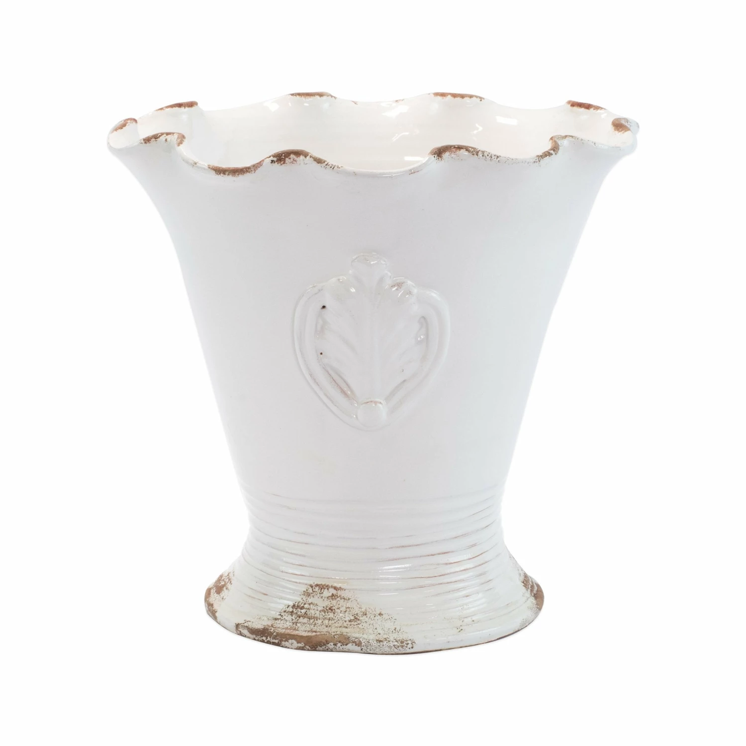 The Rustic Garden White Medium Scallop Planter with Emblem is handsculpted in Italy, and is a beautiful way to bring Italian style into your home through small accents.