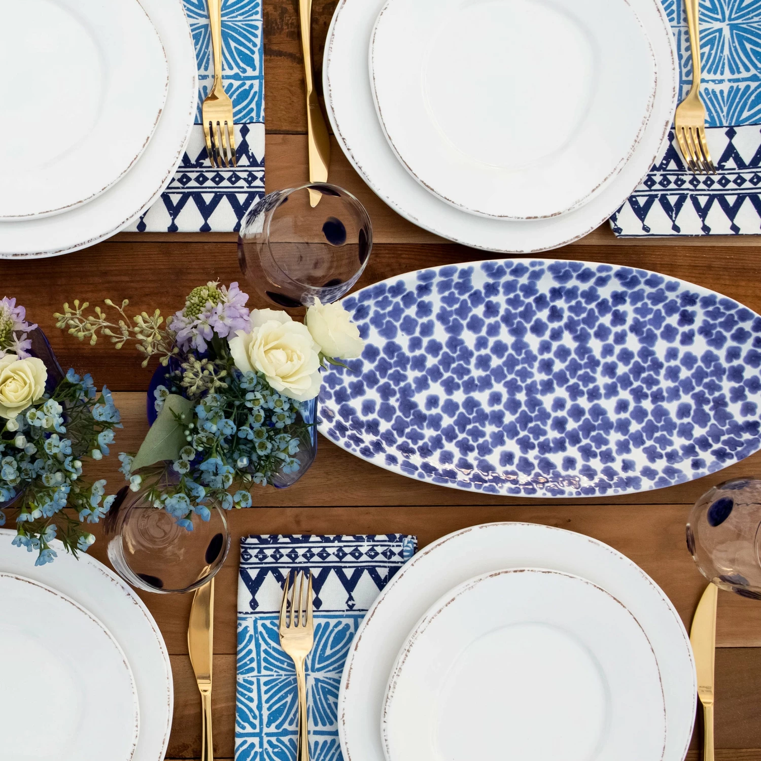Frame your meal on the playful, fun design of the Santorini Flower Narrow Oval Platter. Drawing inspiration from the native colors of the Greek Isles, Santorini will easily become an everyday favorite in your kitchen.