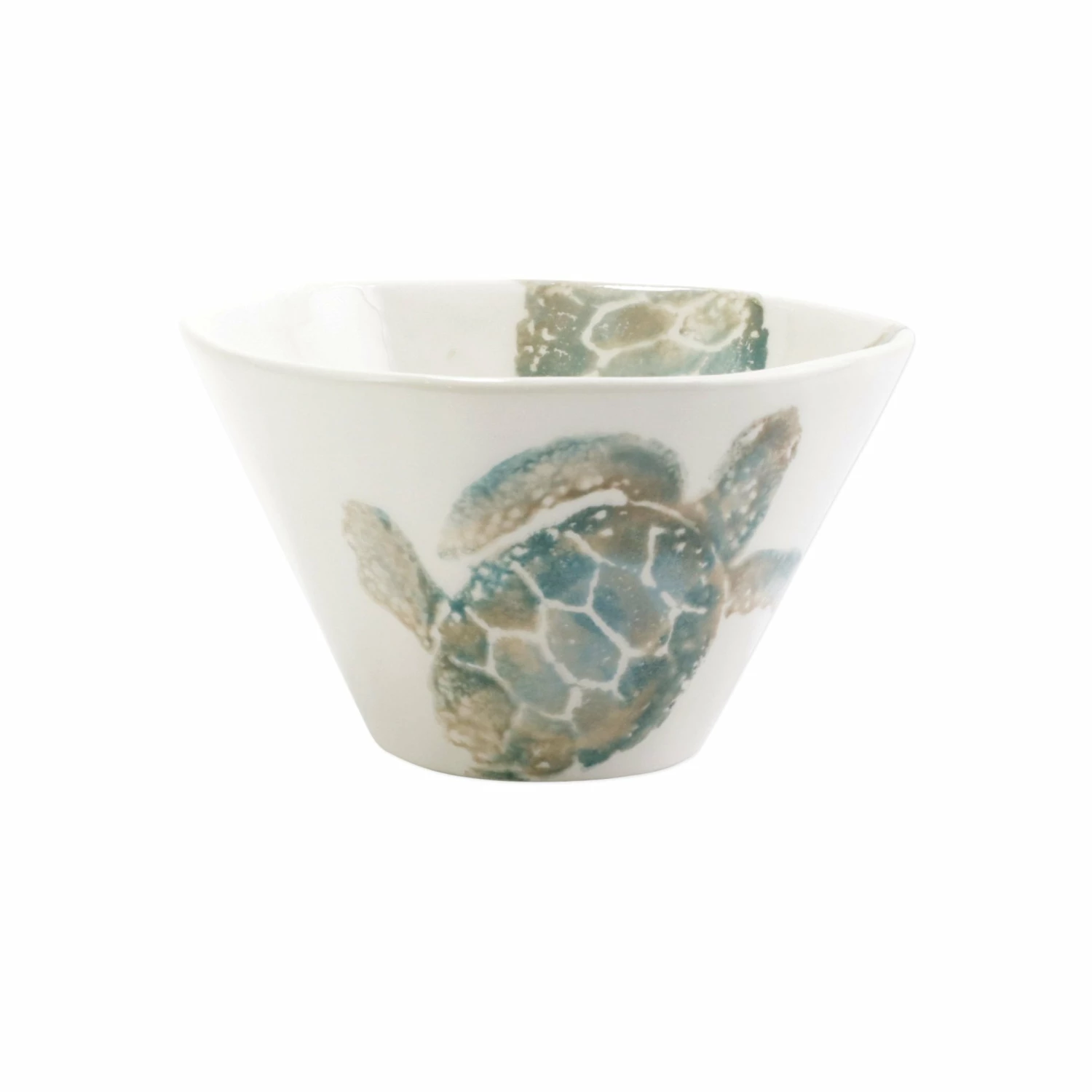 The handpainted sea turtle is rendered in hues of aqua and taupe against a clean, white canvas on the Tartaruga Cereal Bowl. Maestro artisan, Gianluca Fabbro, utilizes a unique sponging technique to carefully add detail to each piece.